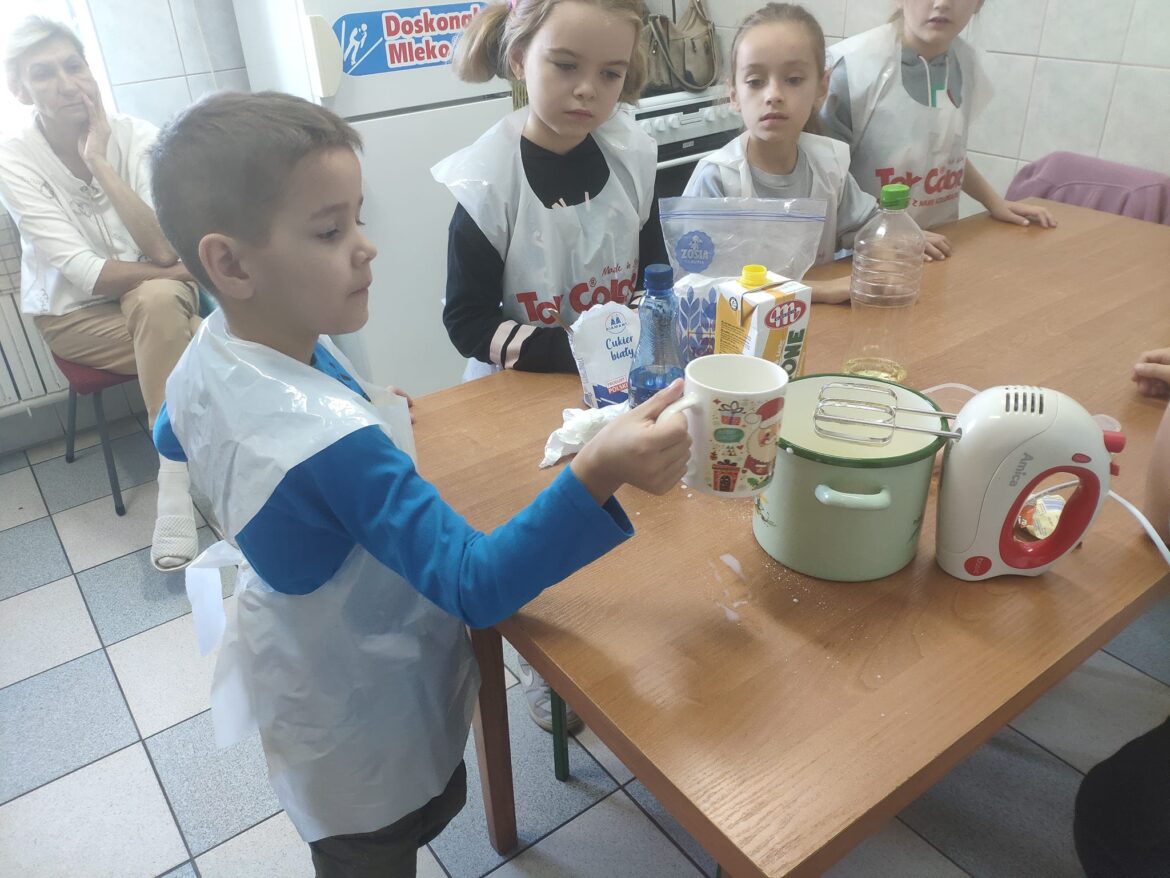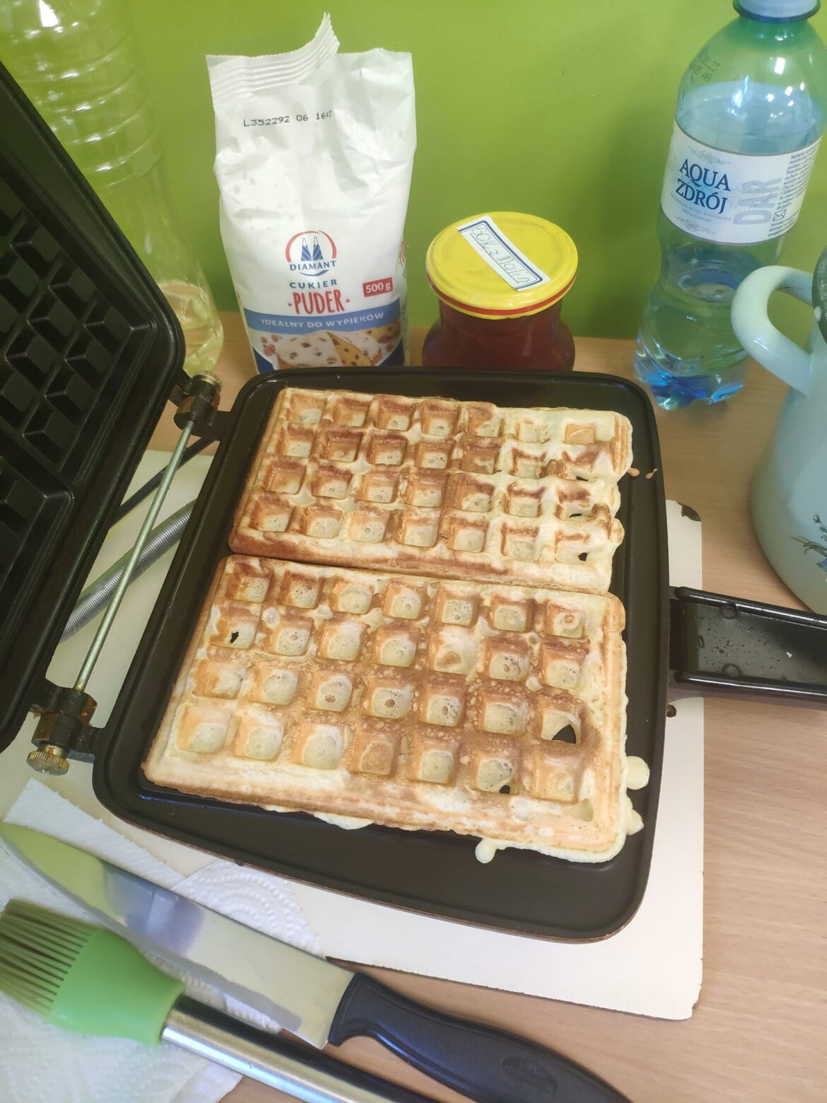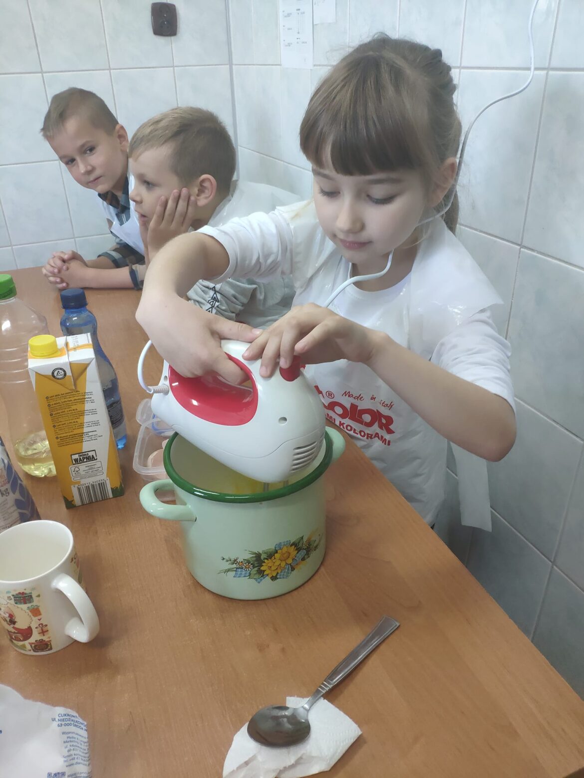 Gofry! Mniam mniam! – Takim okrzykiem rozpoczęły się zajęcia kulinarne w klasie 1. Dzieci przygotowały ciasto oraz bitą śmietanę, po czym upieczone gofry okraszone malinkami i borówkami konsumowały z wielkim apetytem. Przygotowując ciasto i śmietankę korzystały ze sprzętu, zakupionego przez szkołę w ramach programu Laboratoria Przyszłości. 🧇😋😊