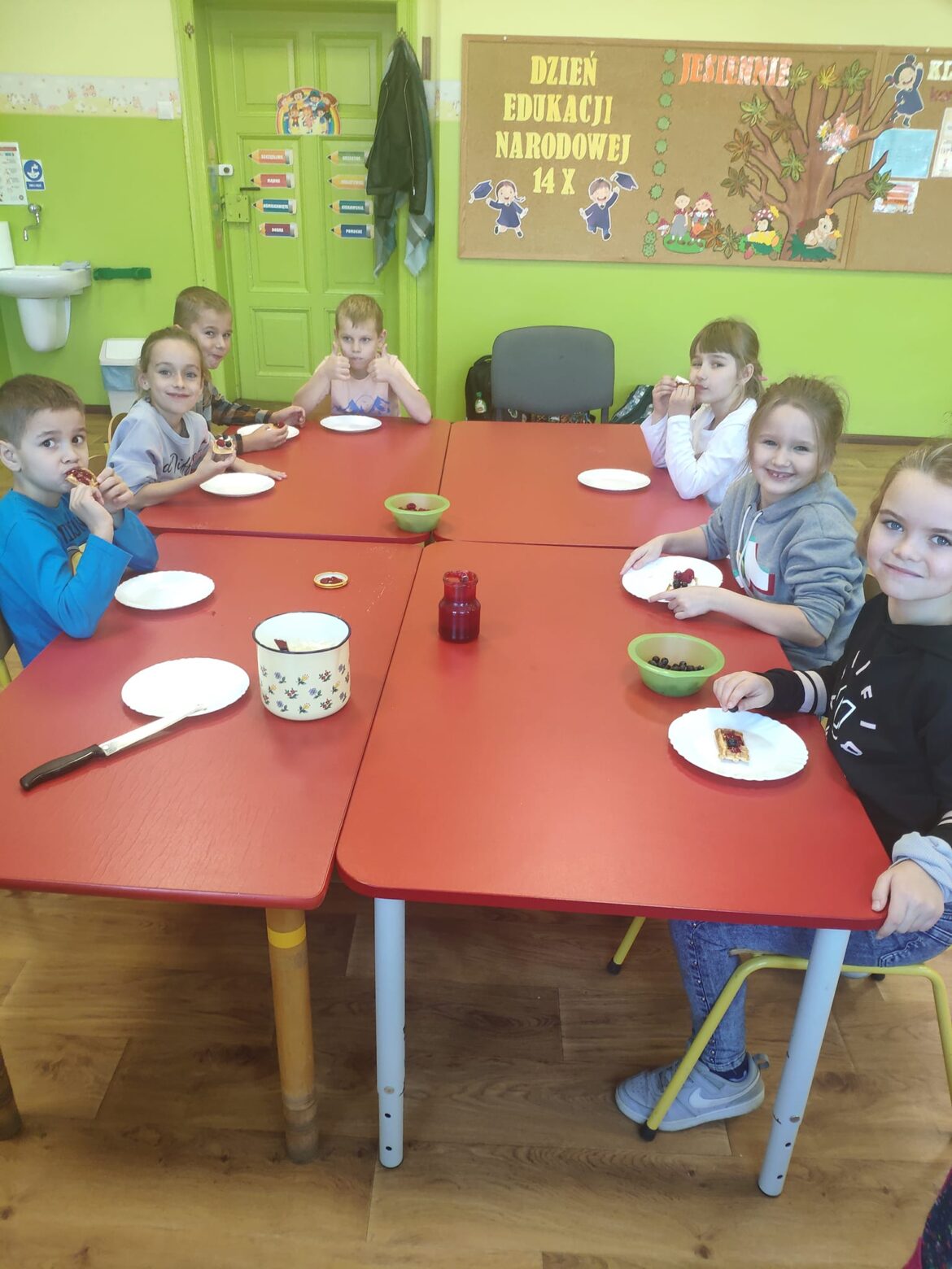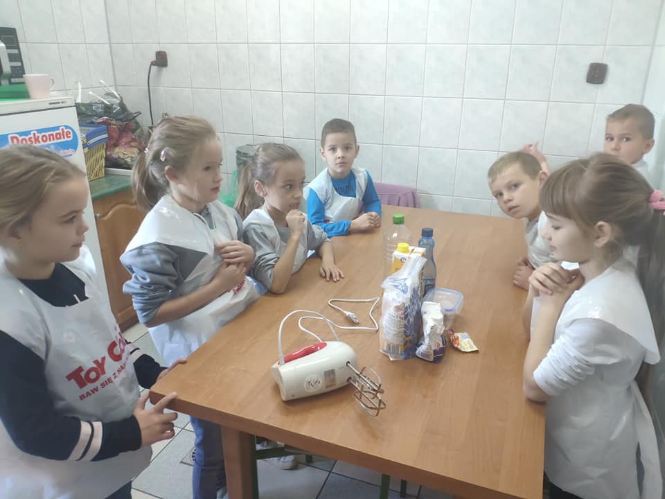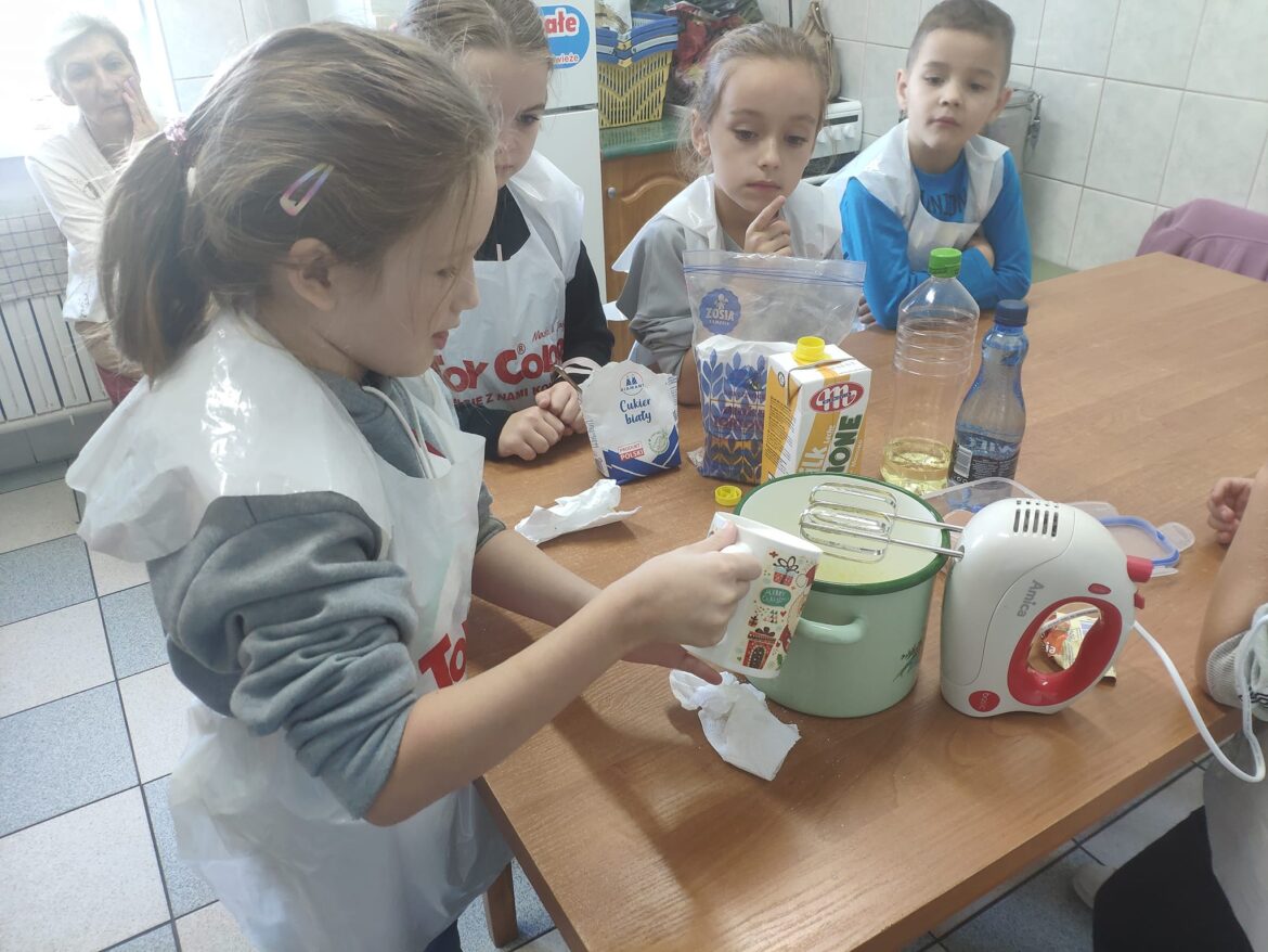 Gofry! Mniam mniam! – Takim okrzykiem rozpoczęły się zajęcia kulinarne w klasie 1. Dzieci przygotowały ciasto oraz bitą śmietanę, po czym upieczone gofry okraszone malinkami i borówkami konsumowały z wielkim apetytem. Przygotowując ciasto i śmietankę korzystały ze sprzętu, zakupionego przez szkołę w ramach programu Laboratoria Przyszłości. 🧇😋😊