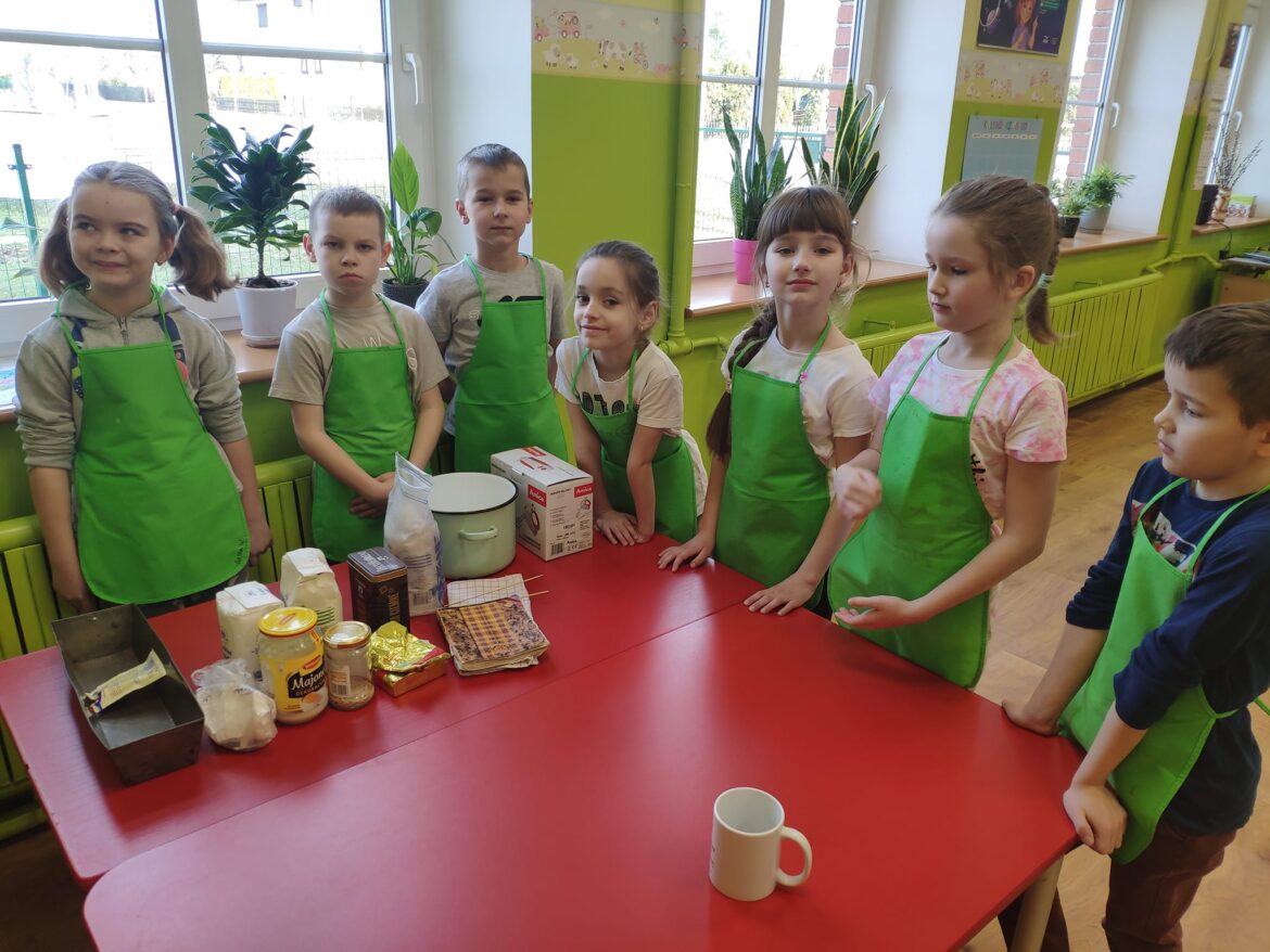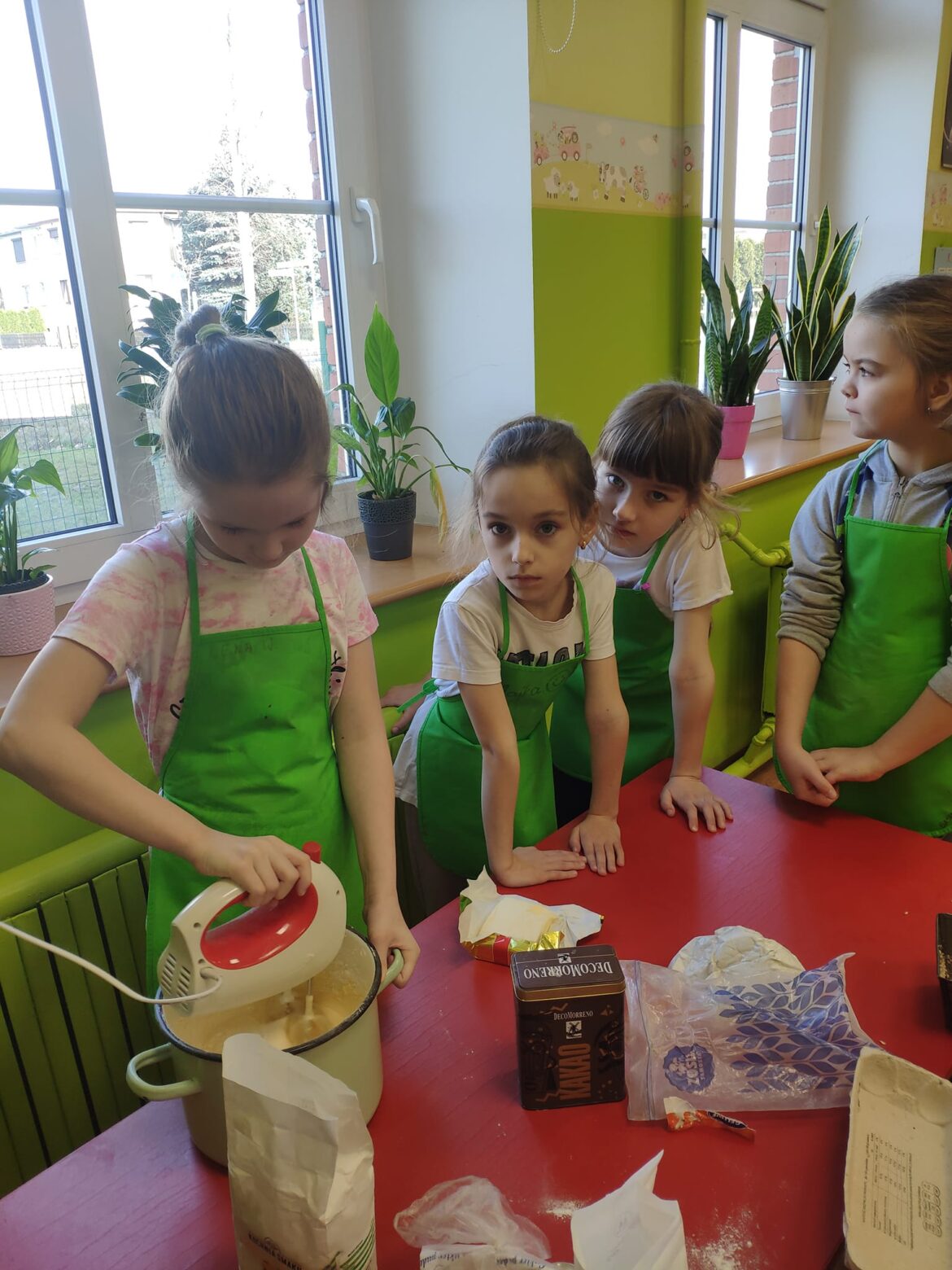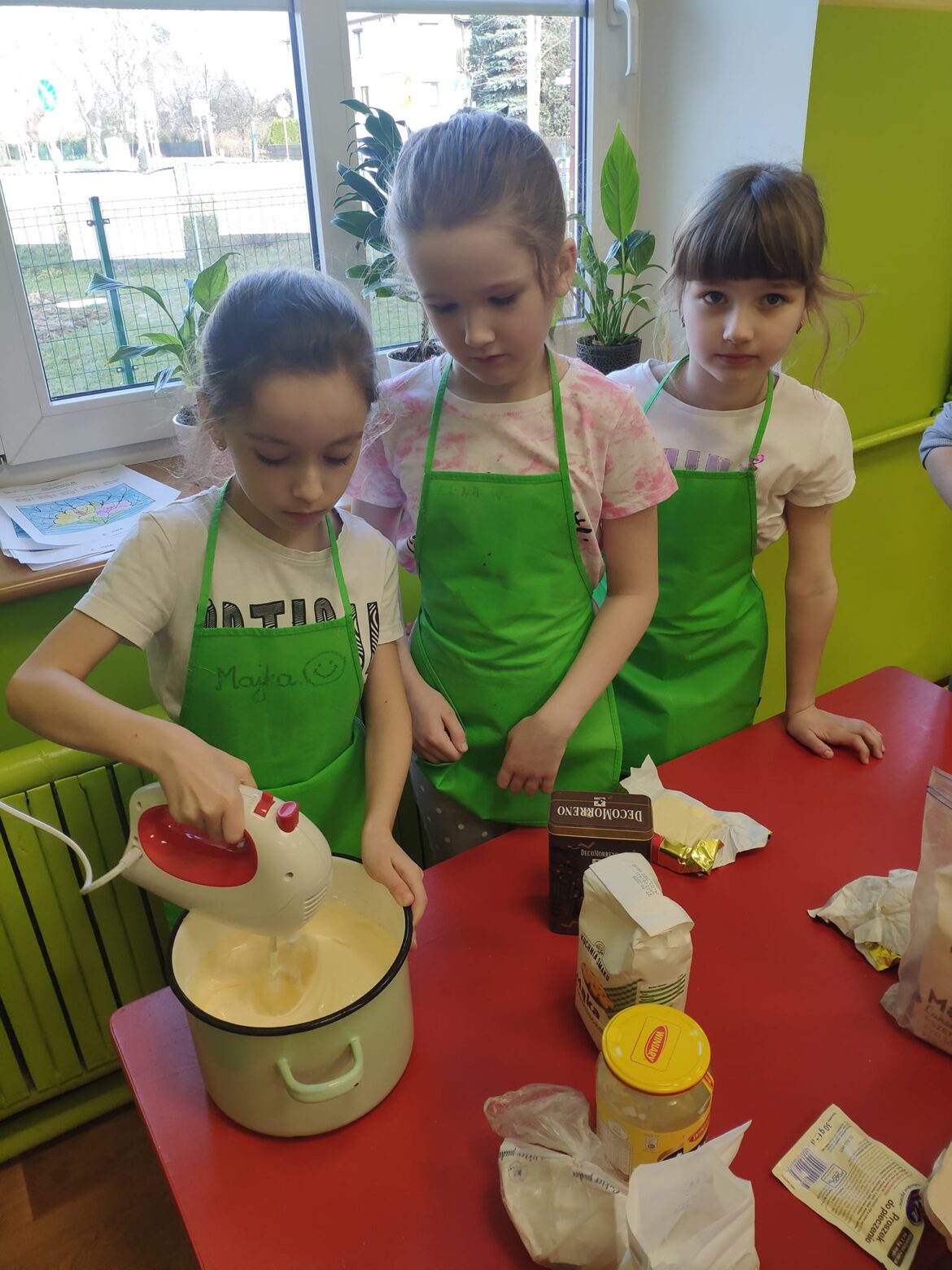 Podczas zajęć kulinarnych uczennice i uczniowie klasy 1 przygotowali babkę wielknocną. Podczas pracy korzystali ze sprzętu zakupionego przez szkołę w ramach programu Laboratoria Przyszłości.