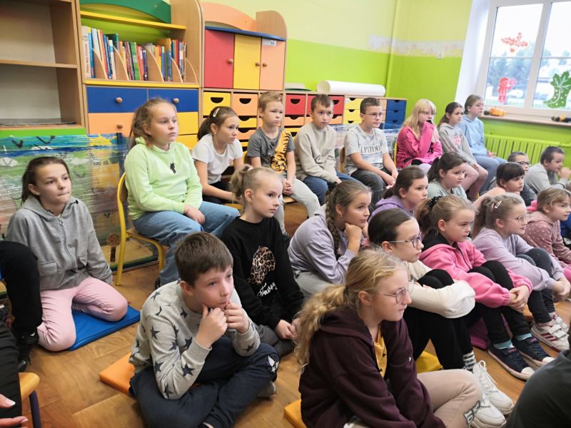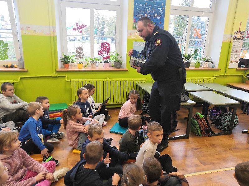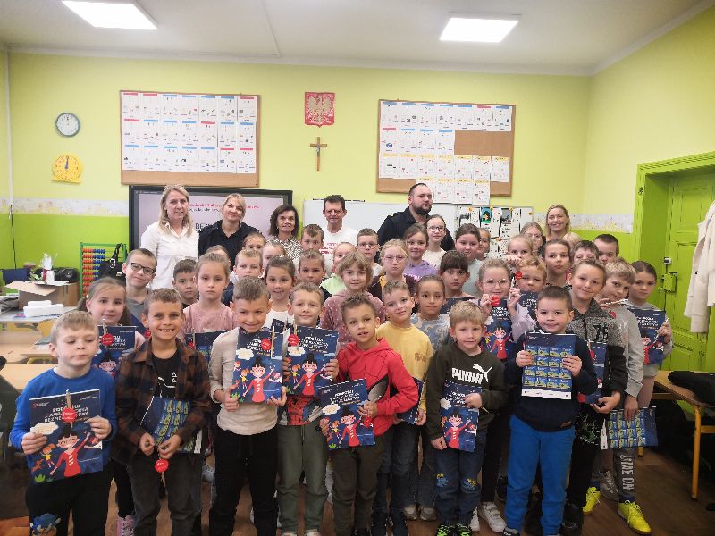 Dzisiejszy gość nigdy dotąd nie przyjechał do naszej placówki z pustymi rękoma. Zawsze pamięta o wszystkich dzieciach, które odwiedza. Nie inaczej było dziś – pan Jarosław przygotował dla uczniów biorących udział w spotkaniu broszury edukacyjne, odblaski oraz długopisy, za które dziękujemy.