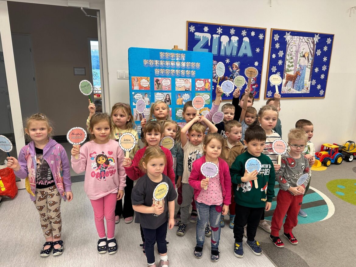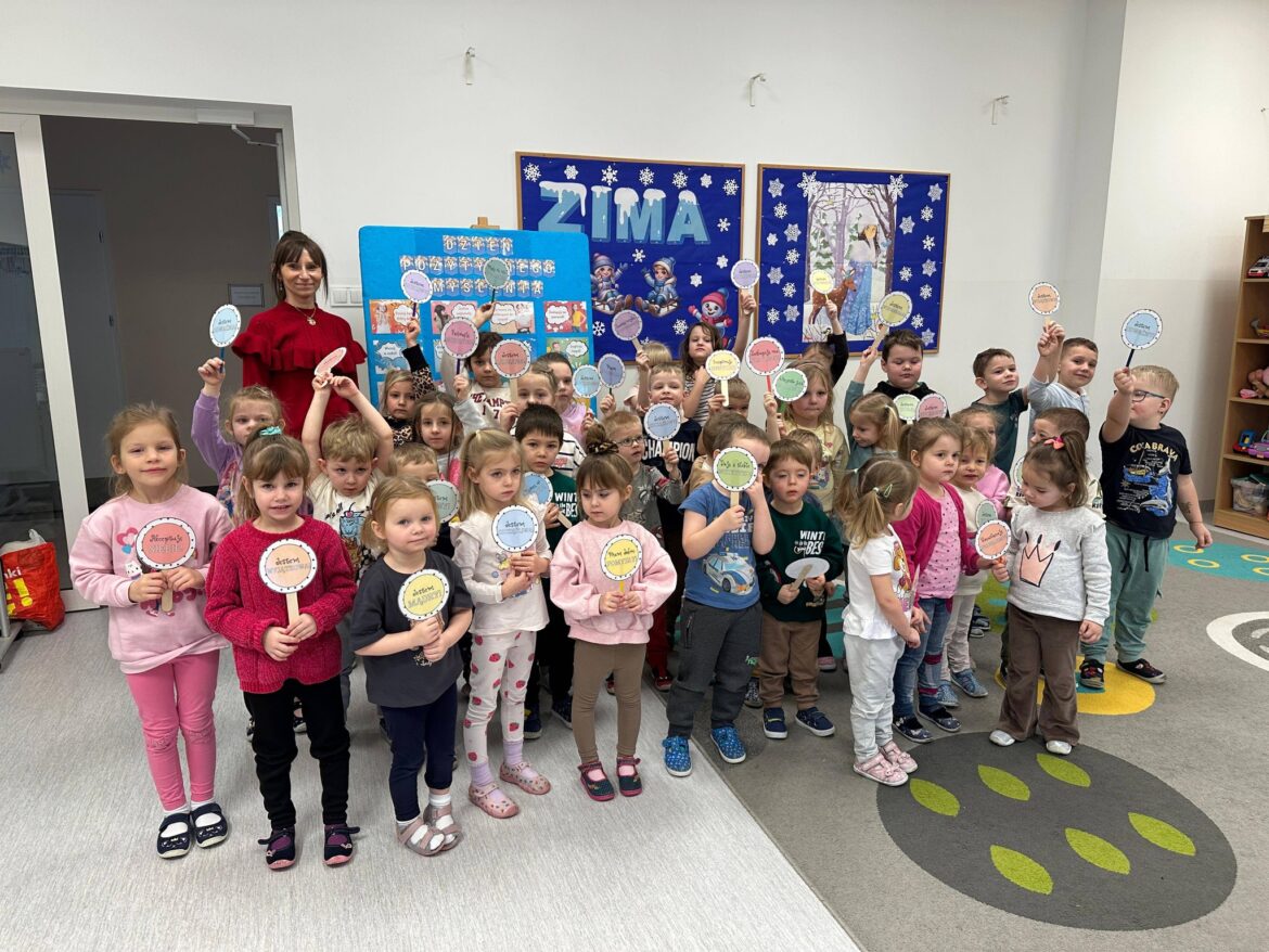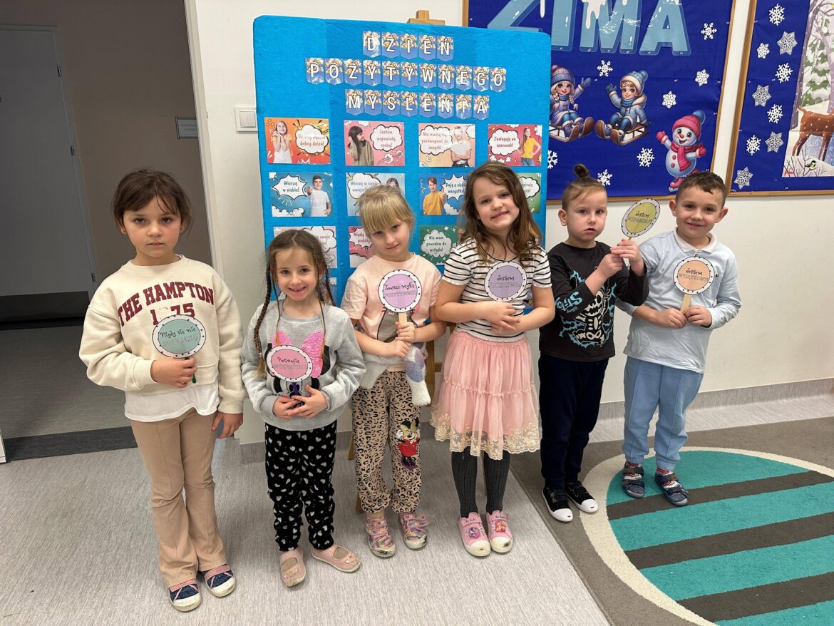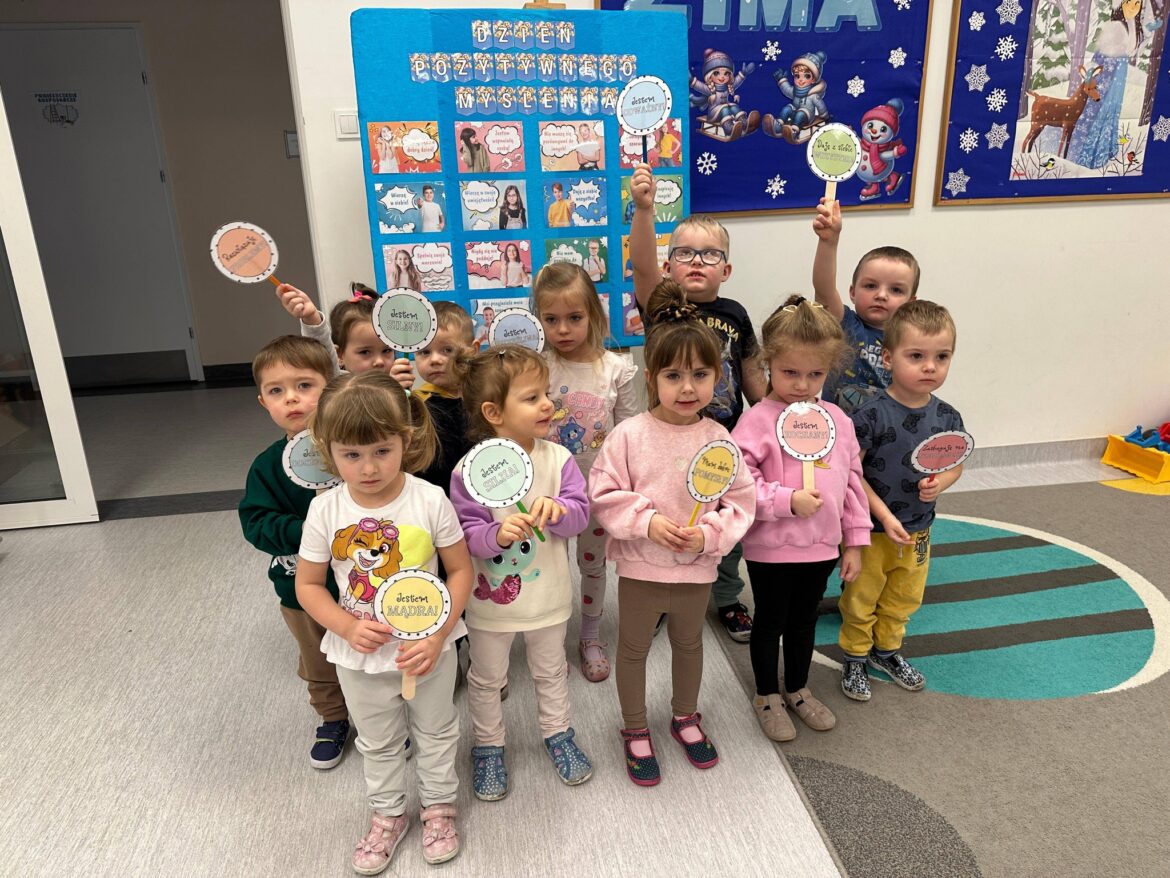 Nasze przedszkolaki również nie zapomniały o Dniu Pozytywnego Myślenia. Dzieci opowiadały o pozytywnych cechach oraz umiejętnościach, mówiły, za co lubią siebie oraz inne osoby. Wszystkie przedszkolaki oczywiście poczęstowane zostały cukierkami, co wprawiło je w jeszcze lepszy nastrój. Nie zabrakło też pamiątkowych zdjęć.