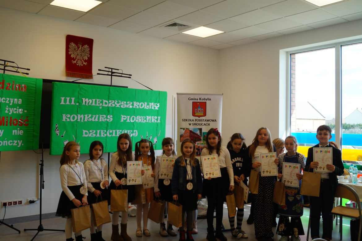 Tematyka tegorocznych utworów dotyczyła rodziny, w związku z tym publiczność mogła wysłuchać piosenek znanych wszystkim, ale również nowych, niemniej pięknych i ciekawych. Najmłodsi popisywali się zarówno talentem wokalnym, jak i choreografią, która dodawała wykonaniu uroku. Tym samym sprawili nie lada kłopot komisji konkursowej w składzie: p.Ania Kowalczyk – przewodnicząca Rady Rodziców, p.Ireneusz Chmielarczyk – muzyk z zamiłowania i wykształcenia, zaprzyjaźniony z naszą szkołą oraz Łukasz Maćkowiak – kapelmistrz Orkiestry Dętej przy OSP Kobylin.