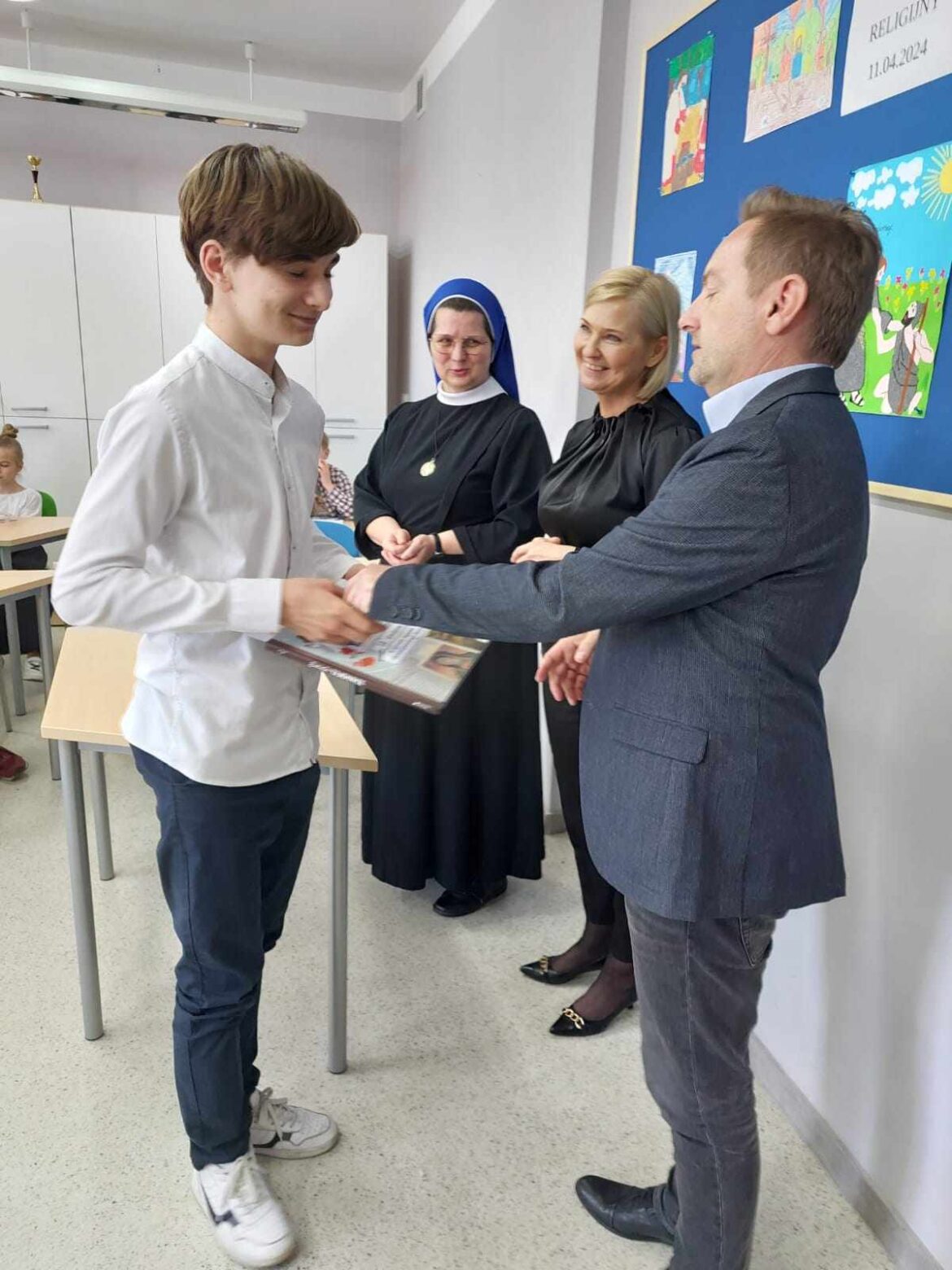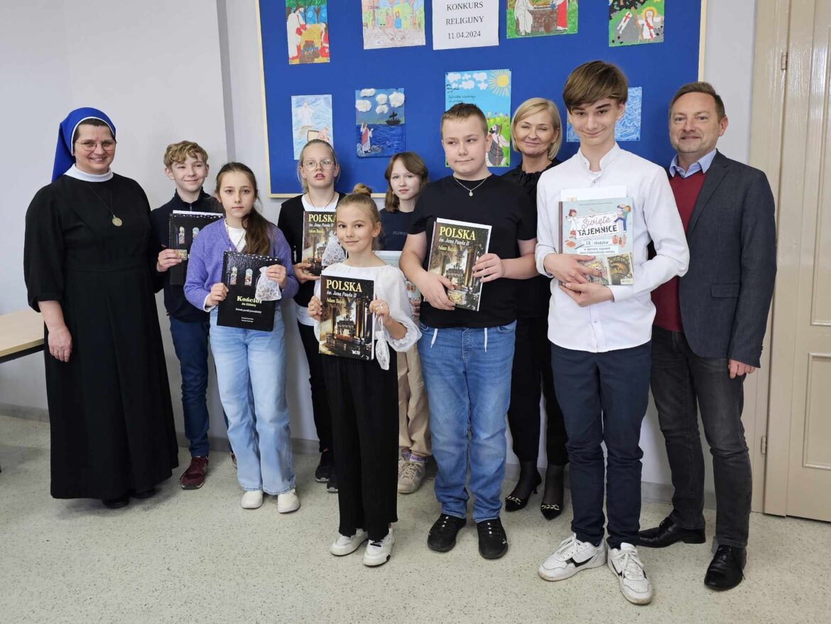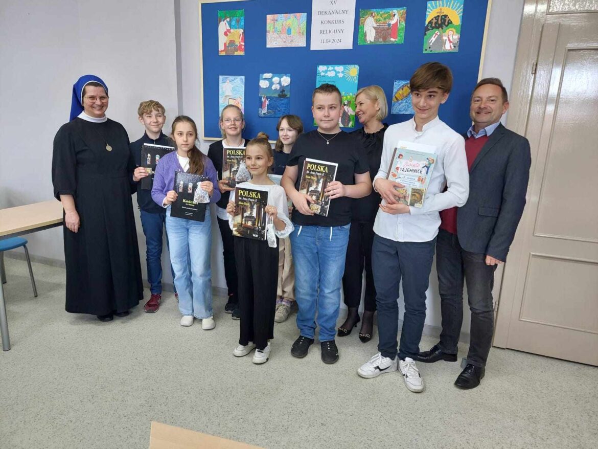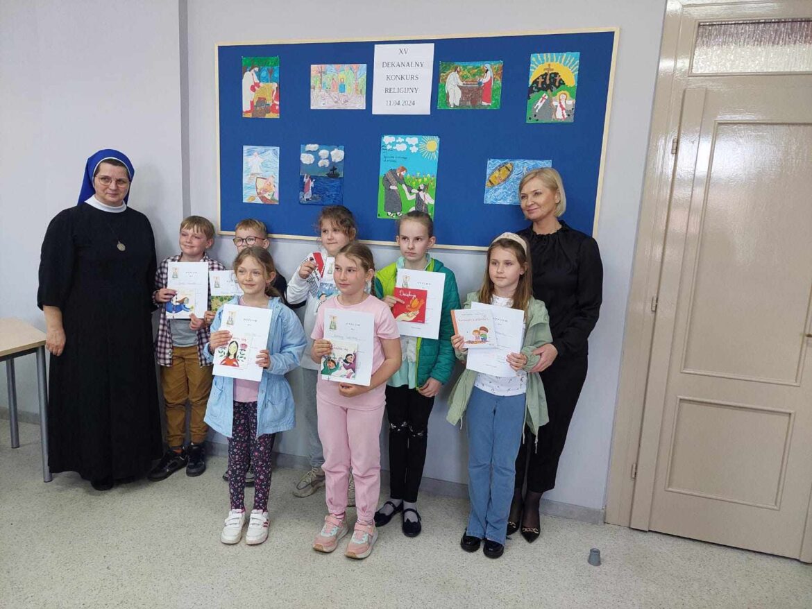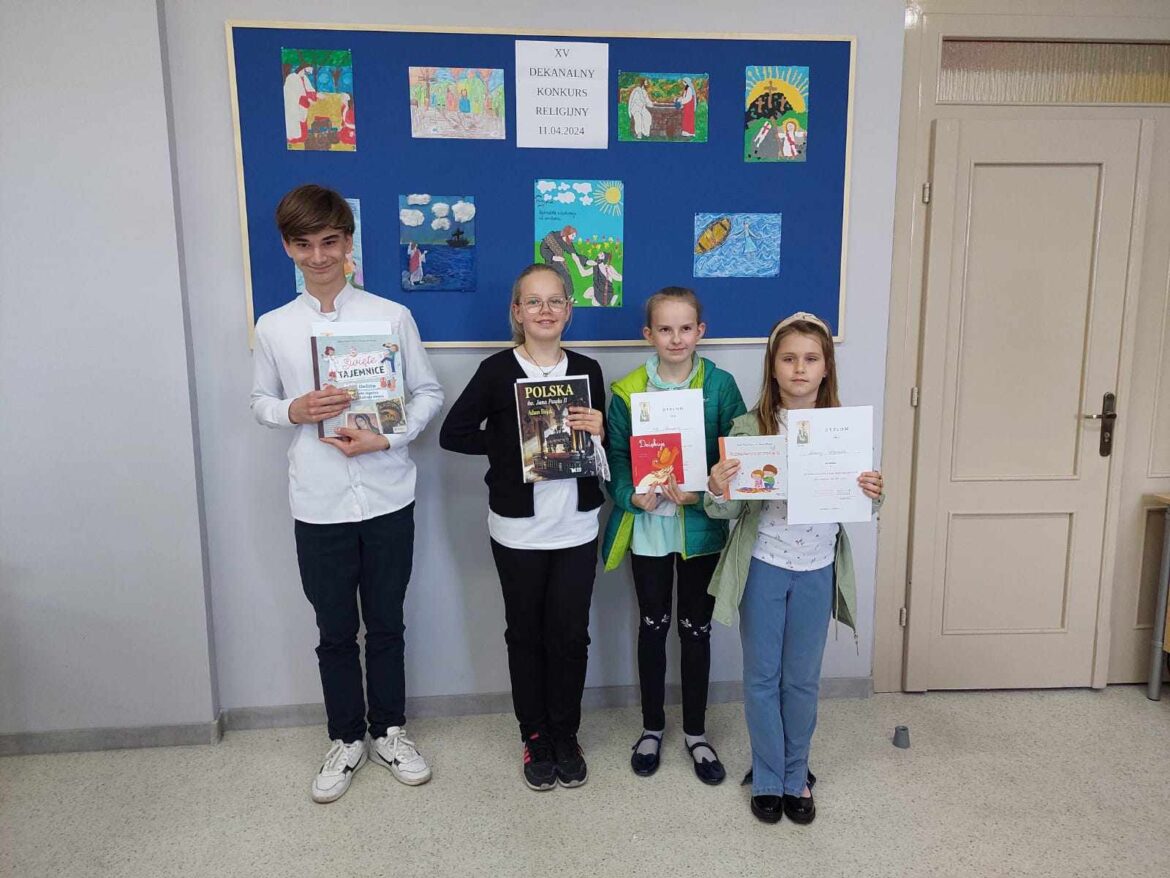 Do etapu dekanalnego zakwalifikowali się: Liliana Poślednik z kl. 1, Zosia Przewoźna z kl. 3, Amelia Gabryelczyk z kl. 5 oraz Jan Wojtkowiak z kl. 7. Jury dekanalne uznało, że wszystkie prace plastyczne są tak ładne, iż wszystkim należy się I miejsce. Piszący test musieli już wykazać się wiedzą i największą wykazał się Jan Wojtkowiak z naszej szkoły.