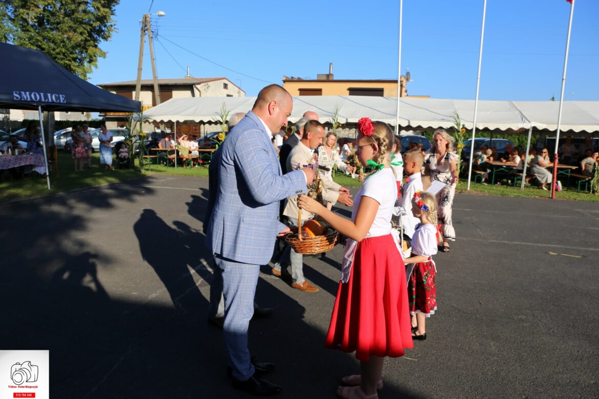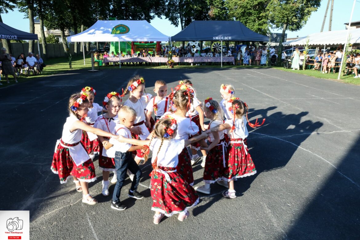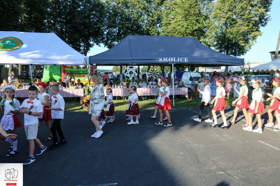W sobotnie popołudnie 24 sierpnia świętowano w Smolicach Dożynki czyli Święto Plonów. Uczniowie Szkoły Podstawowej i grupa przedszkolna Muchomorki pod kierunkiem pań Beaty Szyrner i Małgorzaty Grzywaczewskiej przedstawili zebranym gościom i mieszkańcom Smolic okolicznościowy program artystyczny. Wierszem, tańcem i piosenką uczcili ciężką pracę rolników i zwrócili uwagę, jak ważny jest powszedni chleb. W wierszach i piosenkach wybrzmiało także przywiązanie dzieci do naszej małej ojczyzny – ukochanej wsi Smolice.