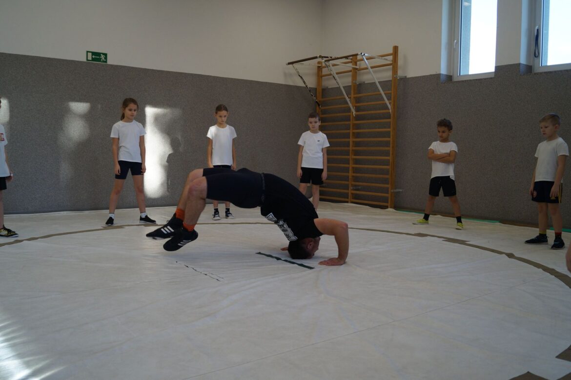 Takie właśnie wyjątkowe wydarzenia miało miejsce 28 listopada. Smoliccy drugoklasiści nie tylko spotkali się, ale i trenowali z wyjątkowym sportowcem – Patrykiem Sworą. Zawodnik pochodzący z naszej gminy od 16 lat trenuje sumo i ma na swoim koncie wiele tytułów – wicemistrz świata, mistrz i wicemistrz Europy, czterokrotny brązowy medalista mistrzostw Europy i dwunastokrotny mistrz Polski.
