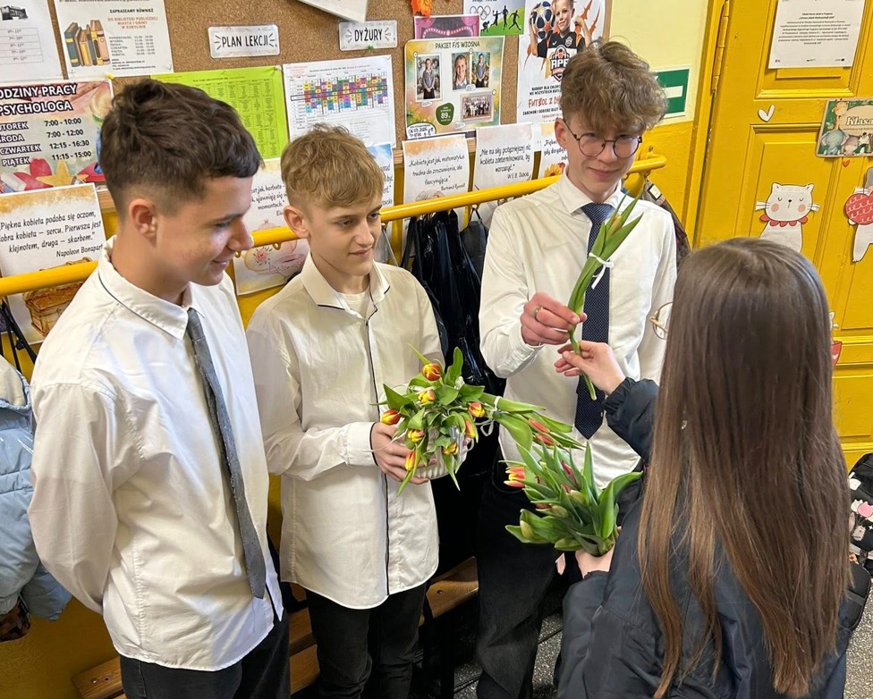 6 marca w naszej szkole i przedszkolu świętowaliśmy Dzień Kobiet. Wszystkim paniom, dziewczynom i dziewczynkom panowie i chłopcy składali piękne życzenia, wręczali kwiatki oraz upominki!