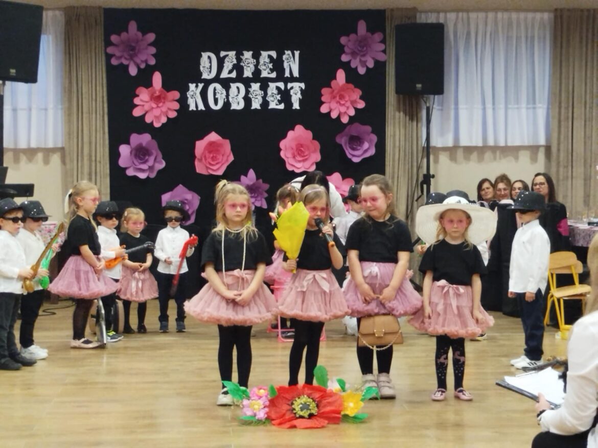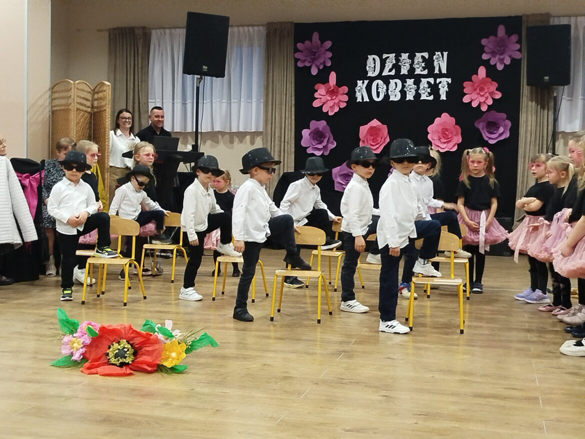 Ponadto przedszkolaki przygotowały występ artystyczny dla wszystkich kobiet pracujących w naszej szkole i przedszkolu. Były piosenki, wierszyki oraz tańce, które wywołały wiele radości i uśmiechów wśród publiczności.