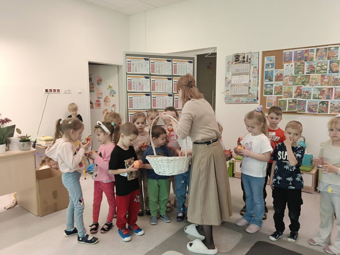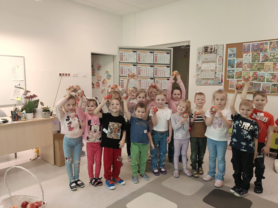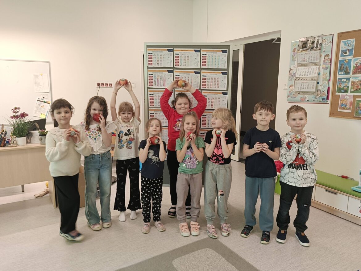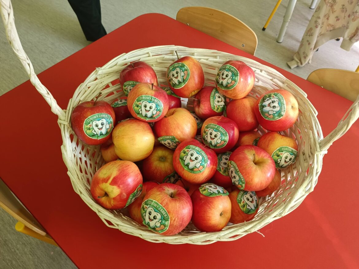 Akcja „Myj zęby z doktorem Ząbkiem” to miesięczna inicjatywa, promująca codzienne dbanie o higienę jamy ustnej wśród dzieci. Każde dziecko otrzymało specjalną kartę – „Grafik mycia zębów”, na której zaznaczało codzienne szczotkowanie. Celem akcji było wyrobienie zdrowych nawyków i pokazanie, że dbanie o zęby może być proste i przyjemne. Na zakończenie uczestnicy otrzymali jabłko z naklejką „Zdrowy Ząbek” jako symbol zdrowego uśmiechu i nagrodę za systematyczność.