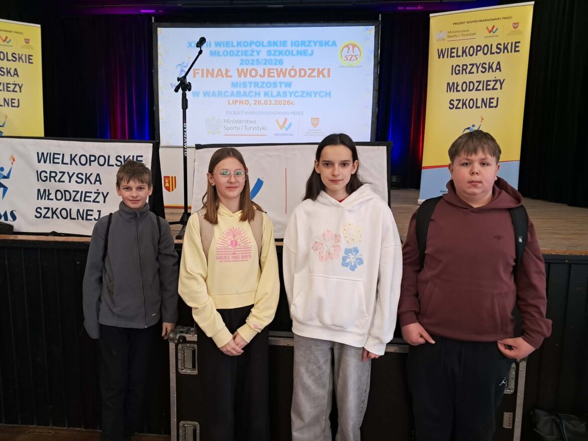Maja Ratajczak, Stanisław Szczurny i Kacper Mosiek z klasy VI startowali w Igrzyskach Dzieci, a Barbara Jeziorek z klasy VIII rywalizowała w Igrzyskach Młodzieży Szkolnej. Rozgrywki toczyły się na dystansie 9 rund. Tym razem nie udało się zająć czołowych miejsc, ale dla naszych uczniów była to doskonała okazja na sprawdzenie swoich umiejętności na tle rywali z całego regionu.