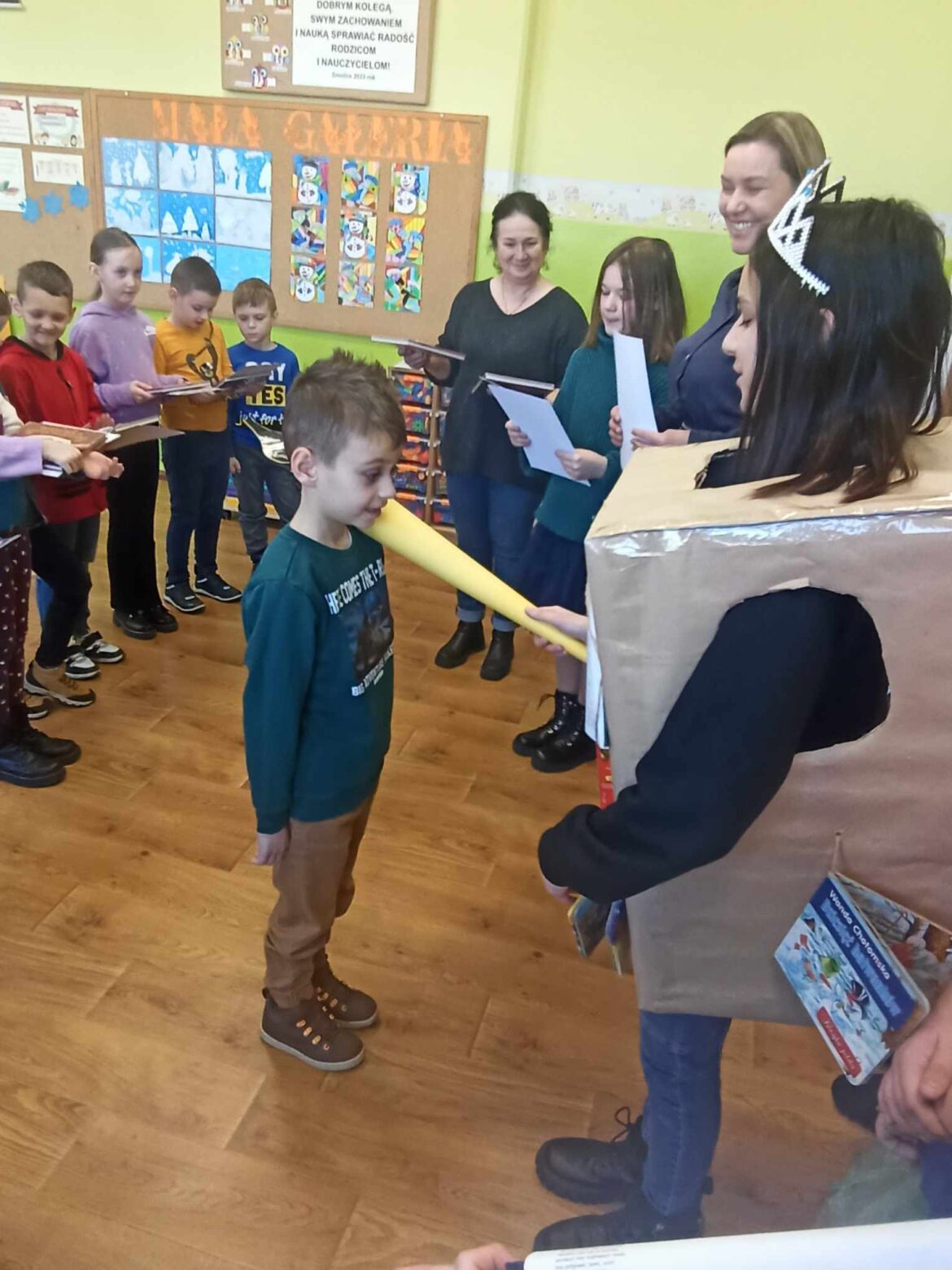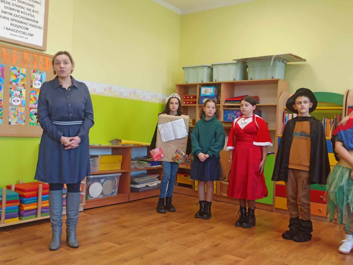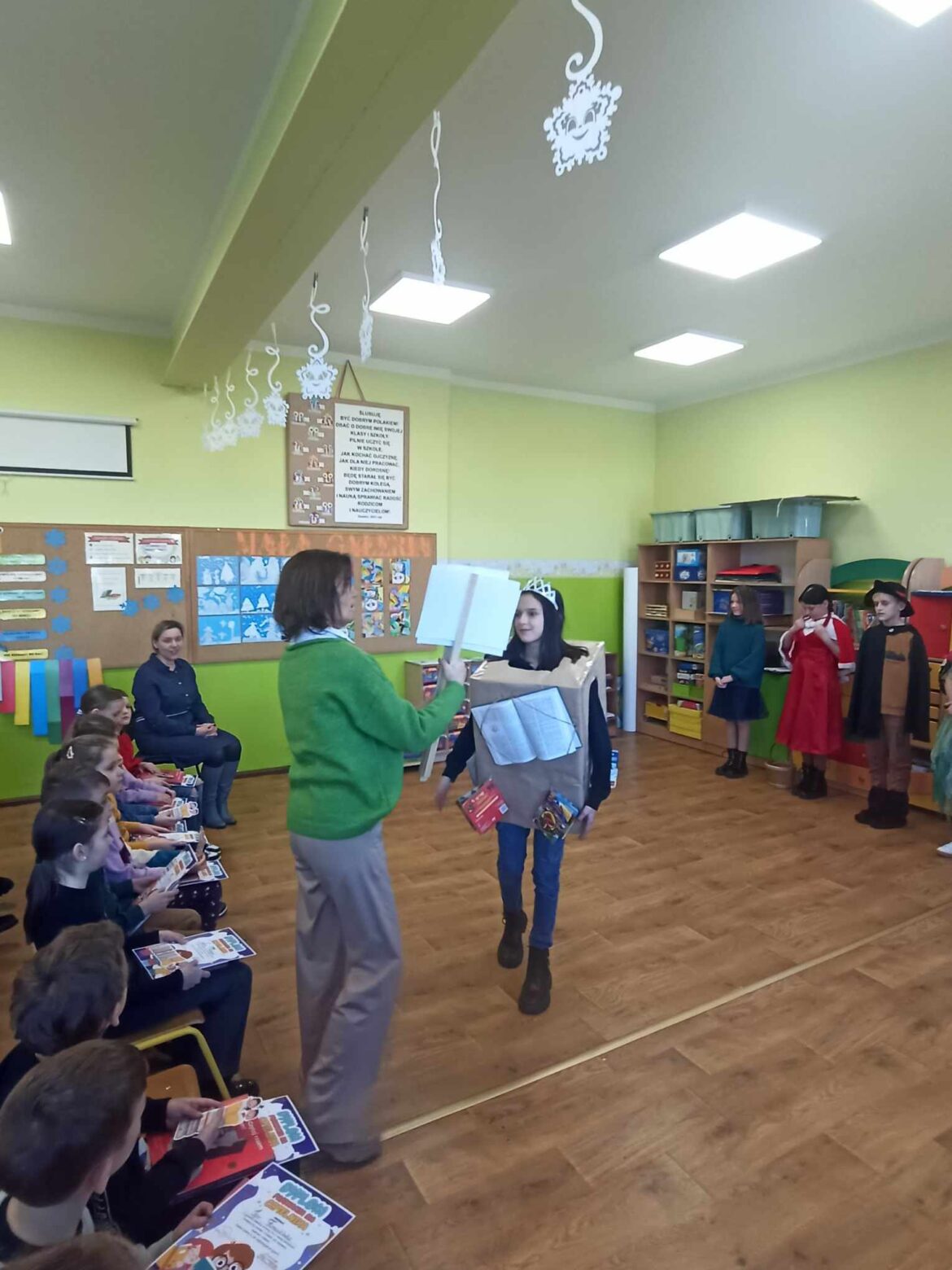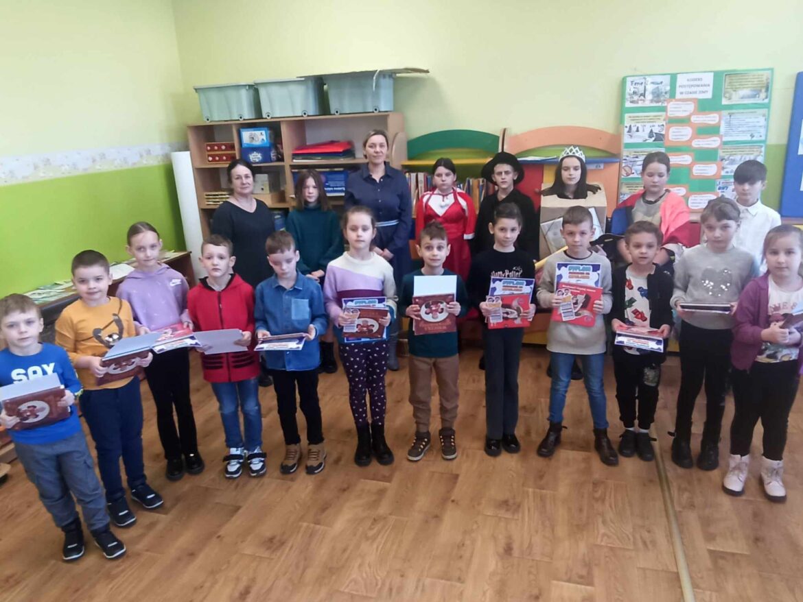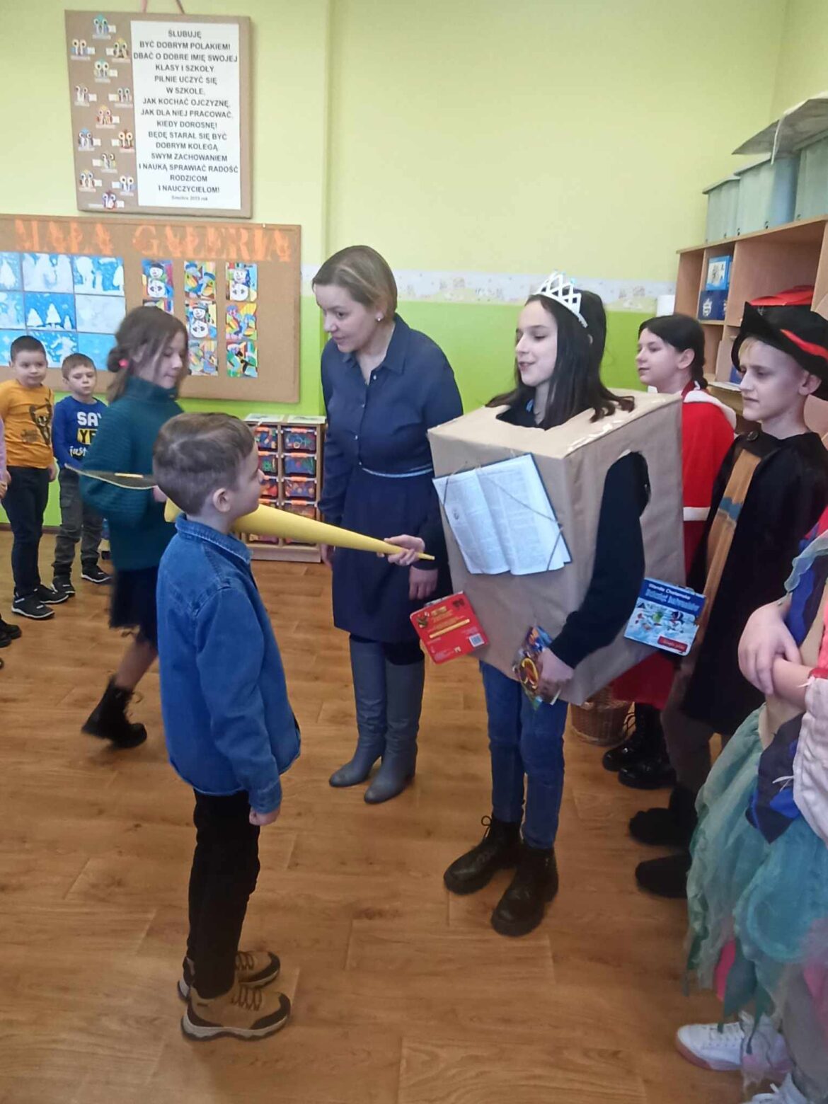 29 stycznia uczniowie klasy I zostali uroczyście pasowani na czytelnika biblioteki szkolnej. Aktyw biblioteczny z tej okazji przygotował inscenizację pt. ,, Zaczarowany Świat Bajek” i zabrał uczniów klasy 1 na spotkanie z bajkowymi postaciami.
