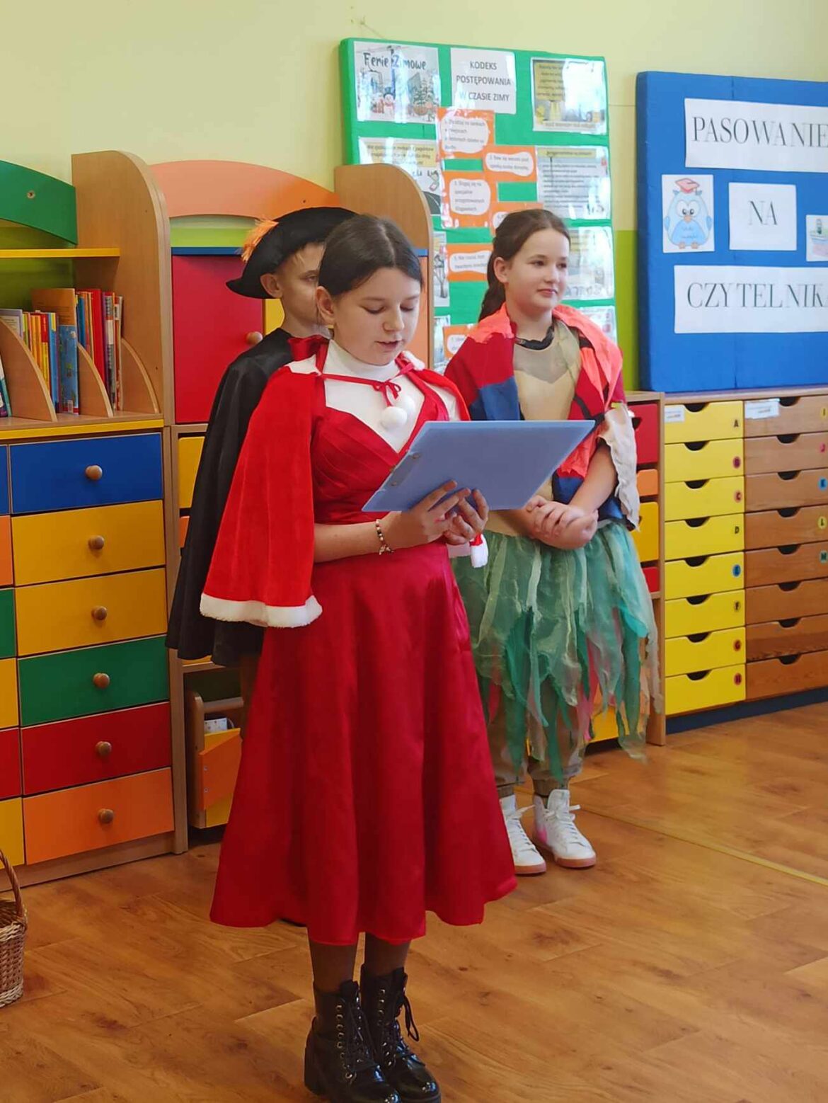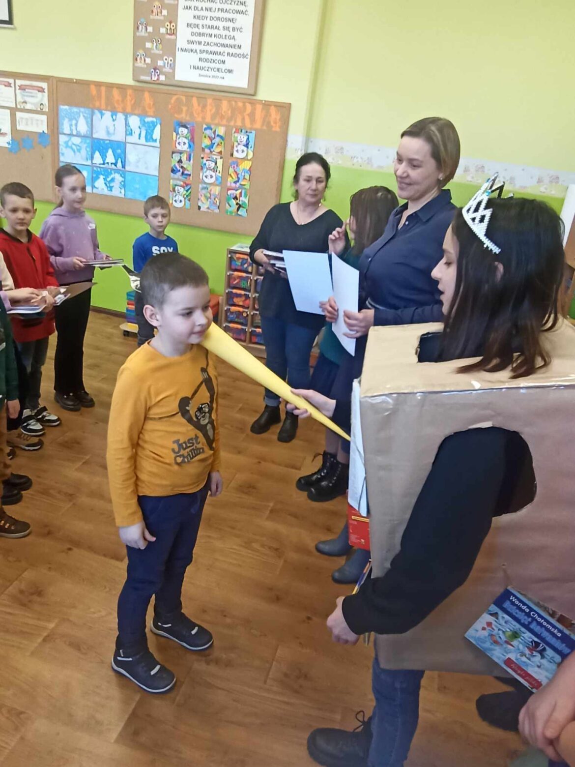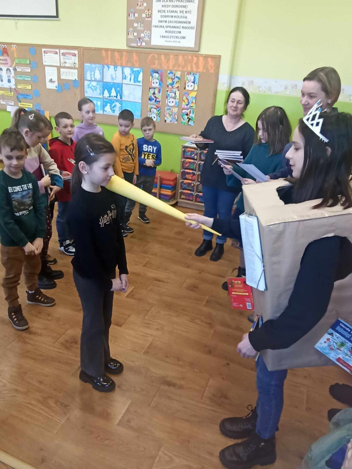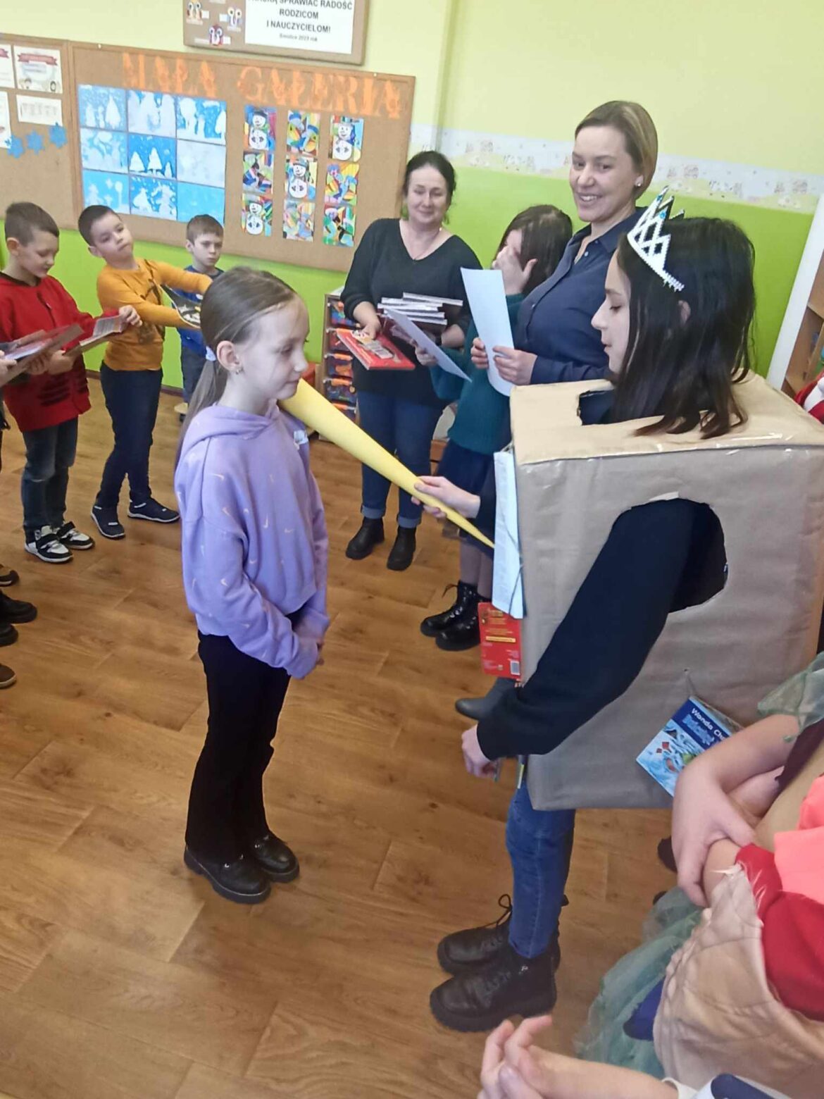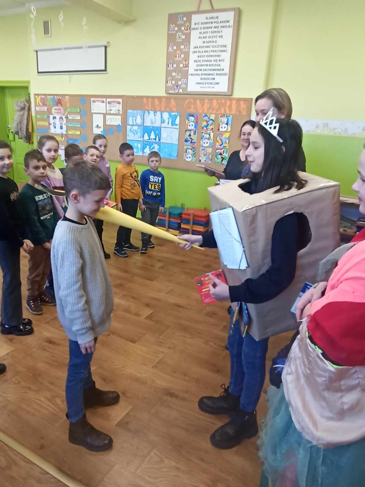 29 stycznia uczniowie klasy I zostali uroczyście pasowani na czytelnika biblioteki szkolnej. Aktyw biblioteczny z tej okazji przygotował inscenizację pt. ,, Zaczarowany Świat Bajek” i zabrał uczniów klasy 1 na spotkanie z bajkowymi postaciami.