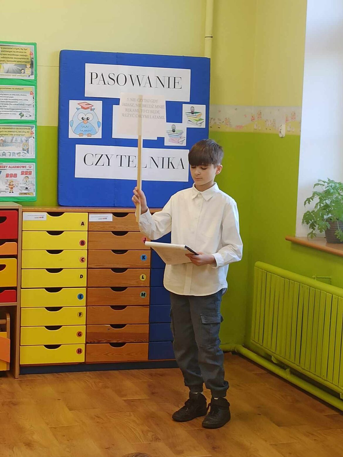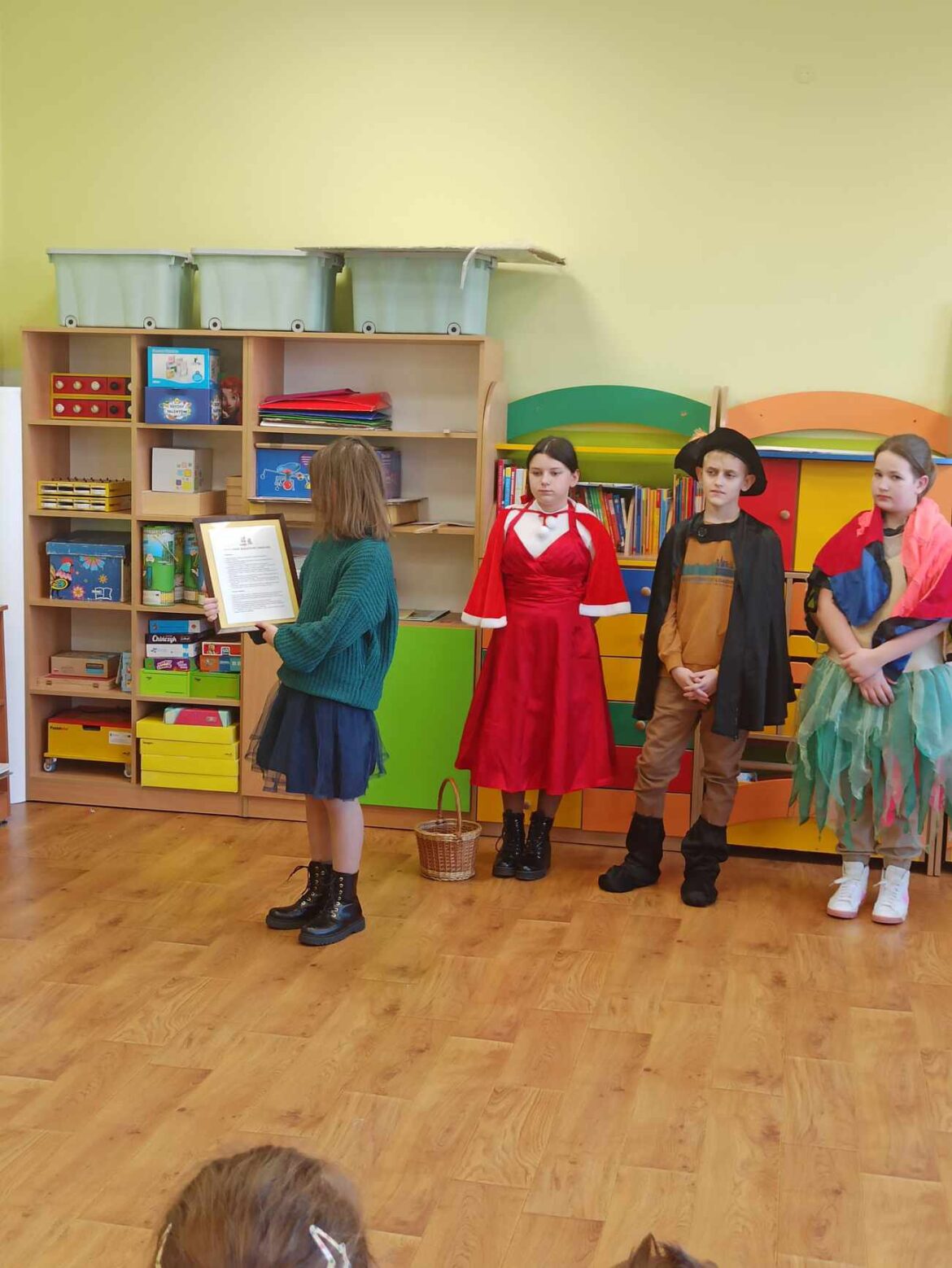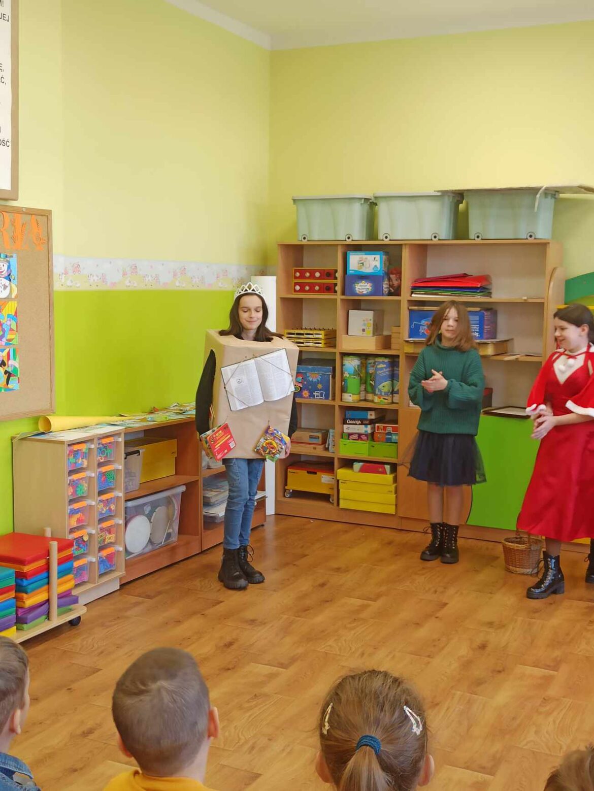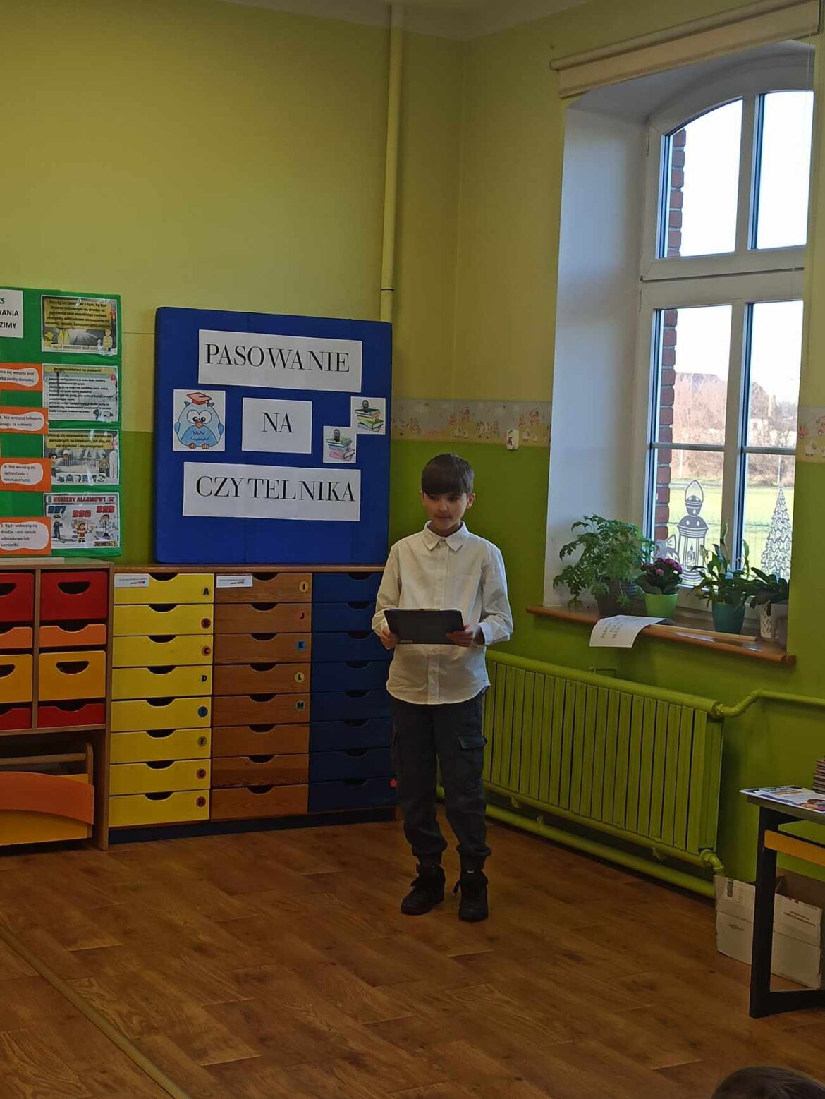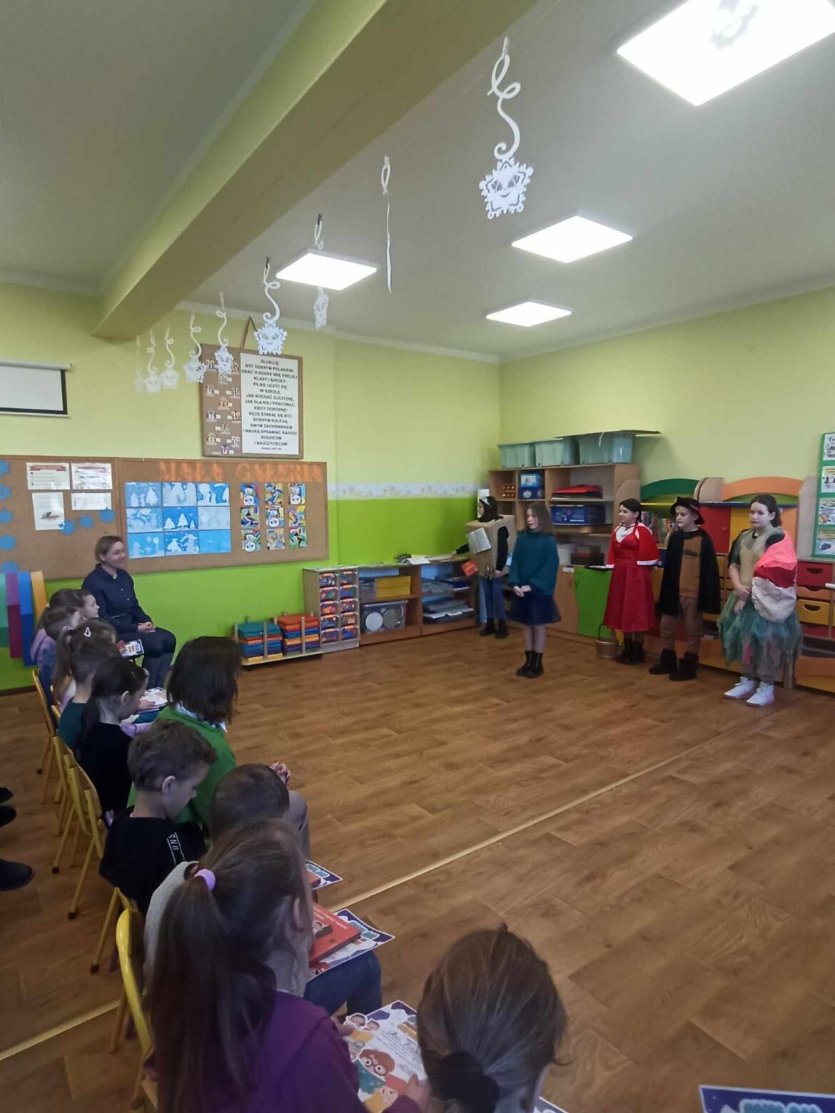 29 stycznia uczniowie klasy I zostali uroczyście pasowani na czytelnika biblioteki szkolnej. Aktyw biblioteczny z tej okazji przygotował inscenizację pt. ,, Zaczarowany Świat Bajek” i zabrał uczniów klasy 1 na spotkanie z bajkowymi postaciami.