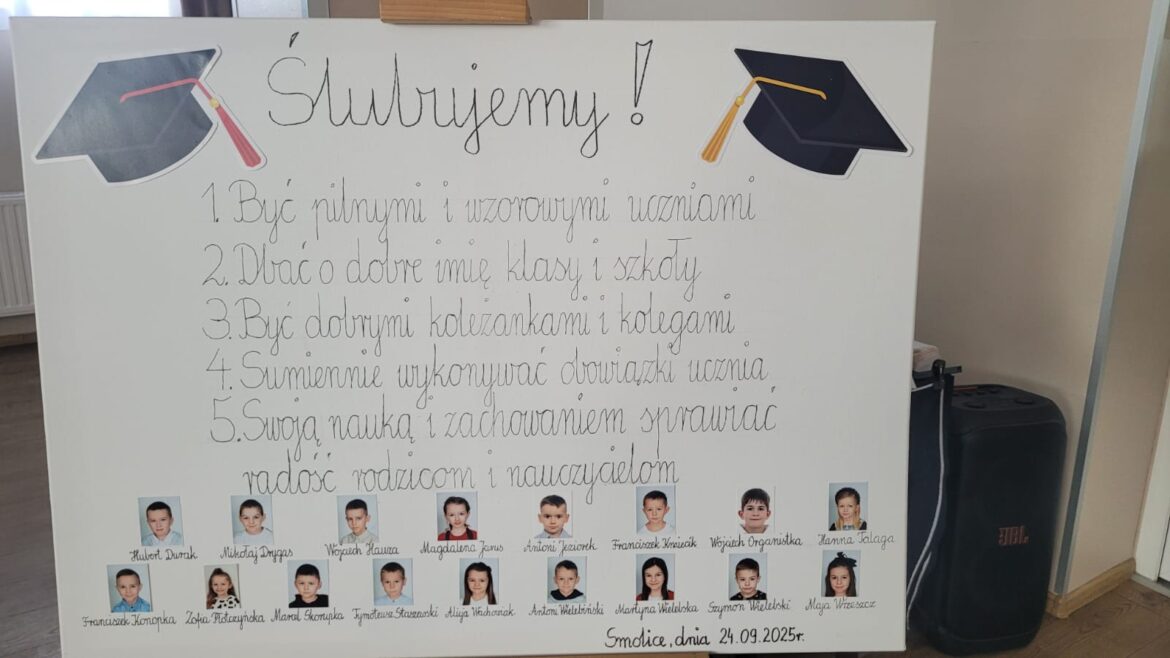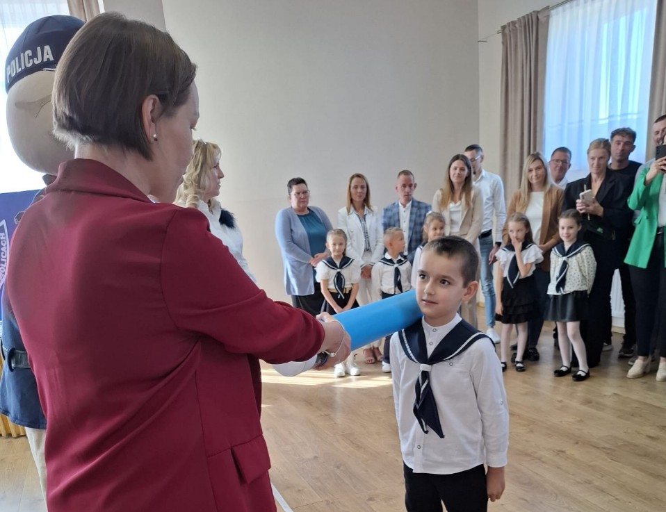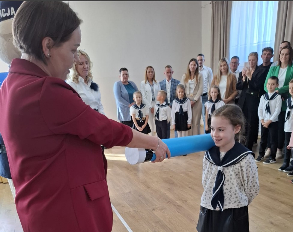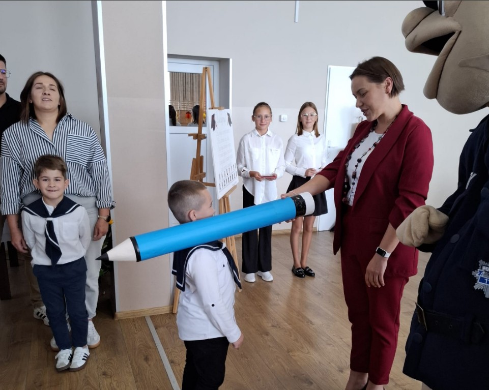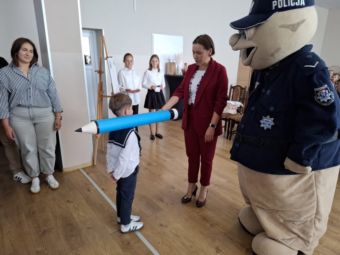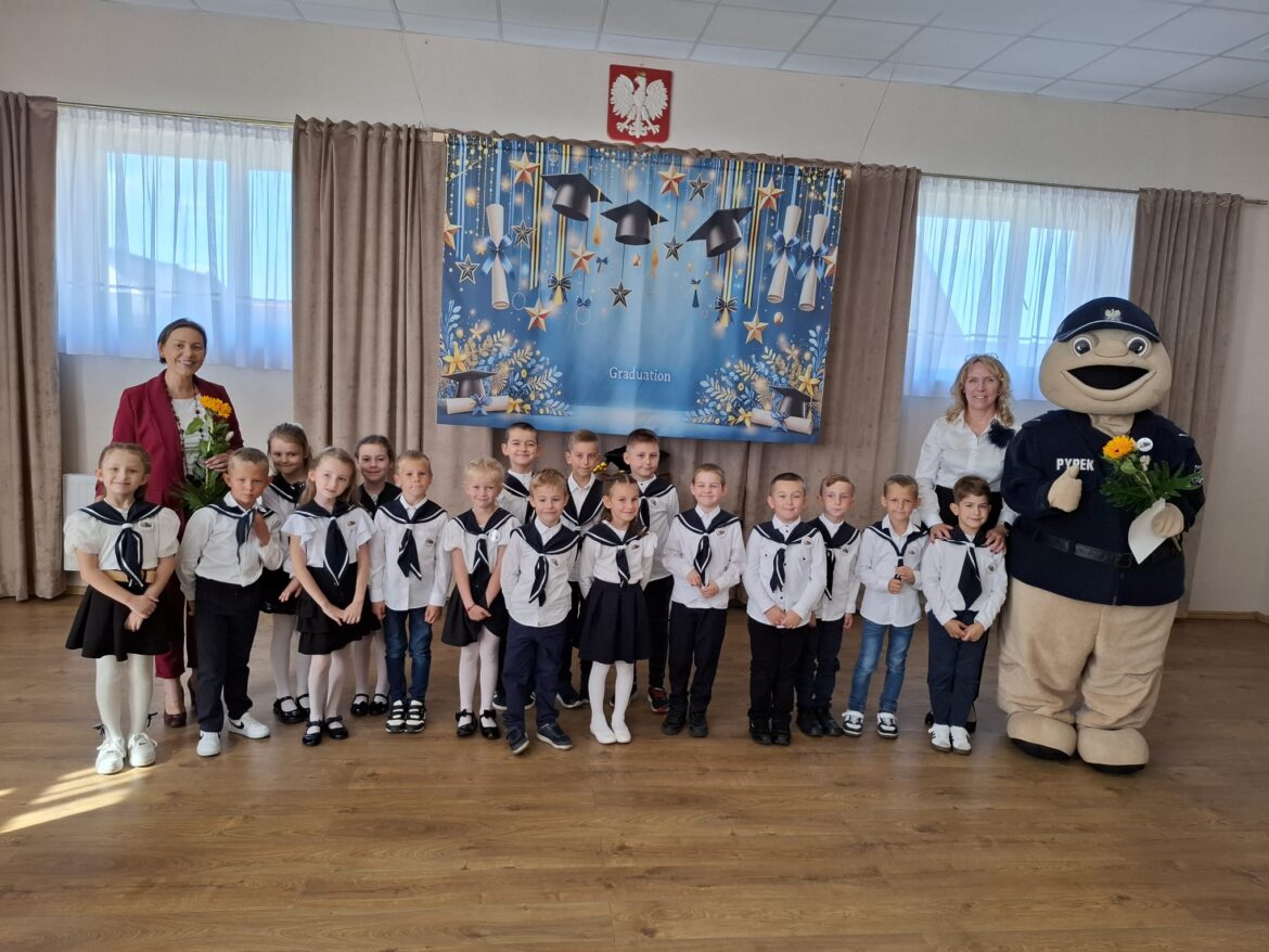 24 września w naszej szkole odbyło się wyjątkowe wydarzenie – pasowanie pierwszaków na uczniów! Uroczystość rozpoczęła się piękną akademią w wykonaniu uczniów klas I, II i III, którzy przygotowali występy pełne radości i wzruszeń. Następnie pierwszoklasiści złożyli uroczyste ślubowanie i zostali oficjalnie przyjęci do grona szkolnej społeczności. Aktu pasowania dokonała Pani Dyrektor Marlena Kamińska w obecności gościa specjalnego – sierżanta Pyrka, maskotki wielkopolskiej policji, a także wychowawczyni klasy pierwszej – Pani Beaty Szyrner.