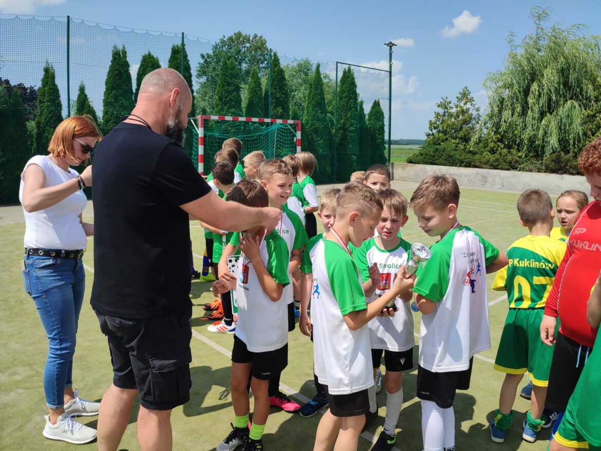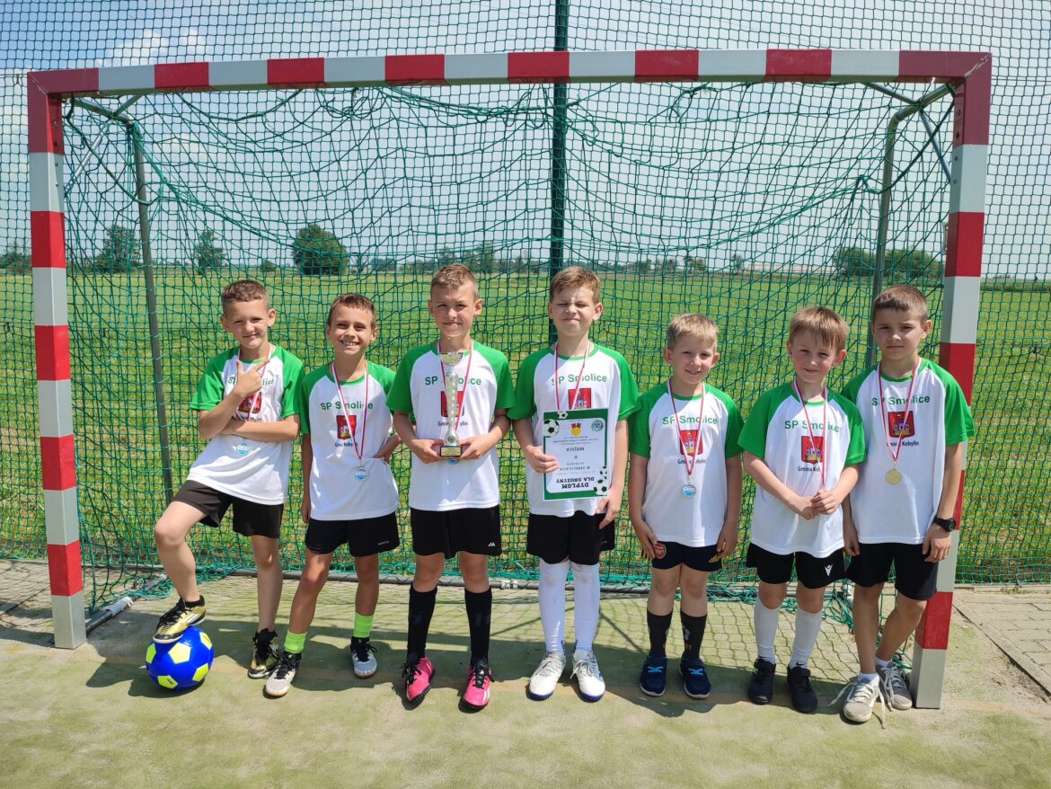 Zwyciężyli kobylinianie, a drugą lokatę zajęła drużyna reprezentująca naszą szkołę! Smoliczanie odnieśli dwa zwycięstwa – 4:1 z SP Zalesie Małe i 1:0 z SP Kuklinów. W smolickim zespole wystąpili Filip Niestrawski, Marcel Wachowiak, Eryk Mikołajczak, Antoni Kempa, Igor Furmankiewicz, Igor Robakowski i Robert Płoszajczak. Gratulujemy naszym zdolnym piłkarzom!