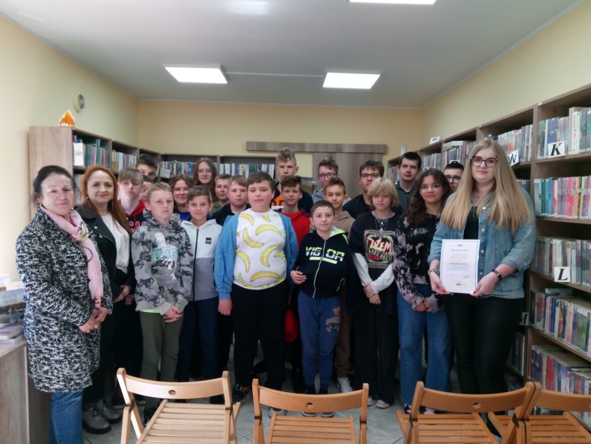 10 maja 2023 r. uczniowie klasy 6 i 8 ze Szkoły Podstawowej w Smolicach wzięli udział w spotkaniu z Panią Karolina Binek – autorką książek dla młodzieży.