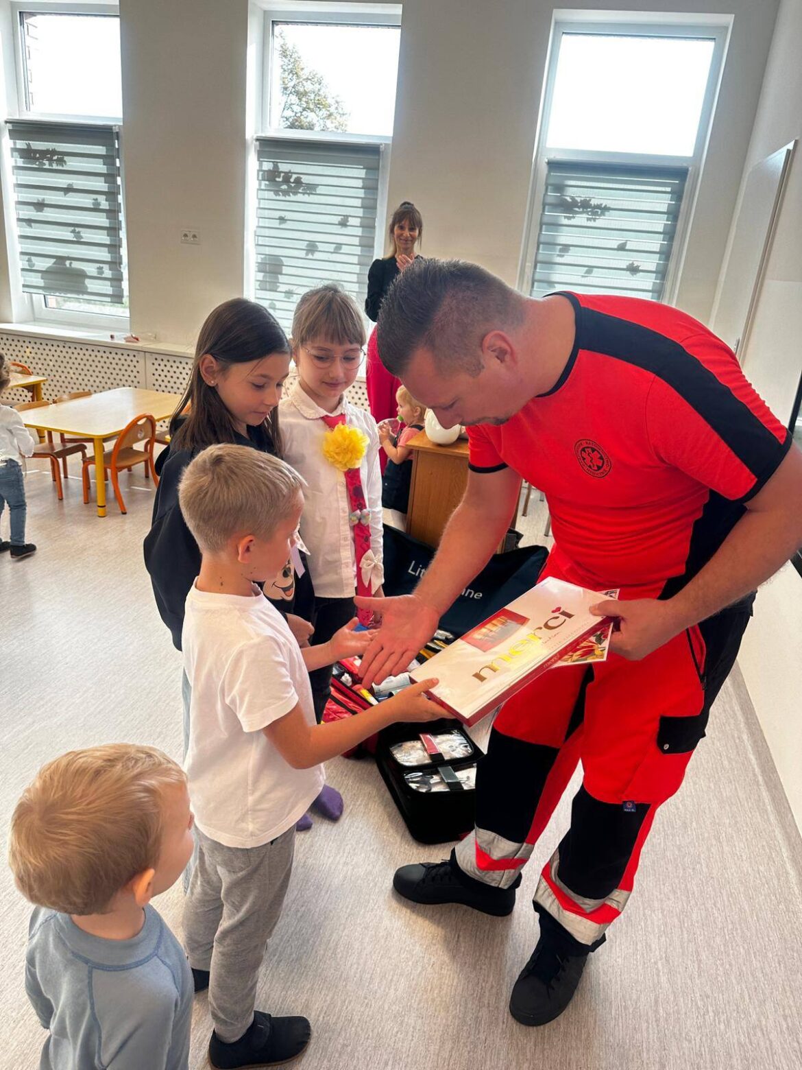 Kto wie, może to spotkanie kogoś zainspirowało i również zostanie ratownikiem medycznym…? Panu Jakubowi serdecznie dziękujemy za poświęcony mam czas, przekazanie istotnych i cennych wiadomości na temat udzielania pierwszej pomocy oraz za przybliżenie specyfiki zawodu ratownika medycznego