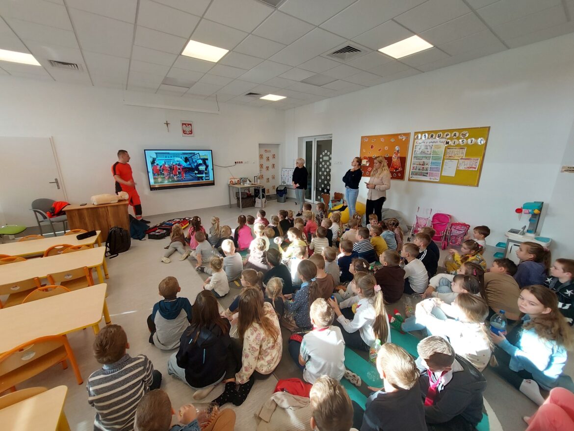 13 października przypadał Dzień Ratownictwa Medycznego. Z tej okazji na zaproszenie społeczności szkolnej i przedszkolnej przybył do naszej placówki pan Jakub Nelle, który jest ratownikiem medycznym. Pan Jakub opowiedział nam o swojej pracy, na czym polega zawód ratownika, ale przede wszystkim podzielił się z nami w ciekawy sposób cennymi wskazówkami, dotyczącymi zasad udzielania pierwszej pomocy.