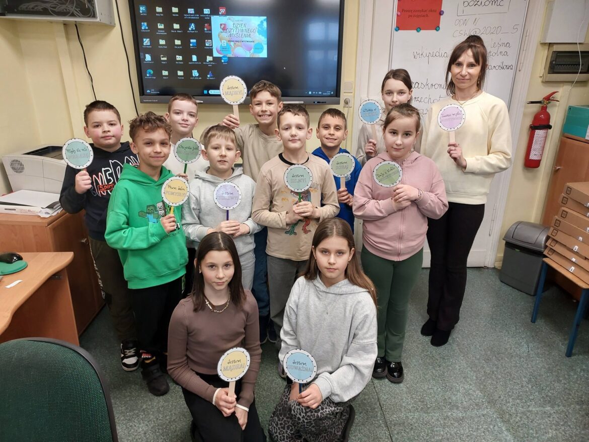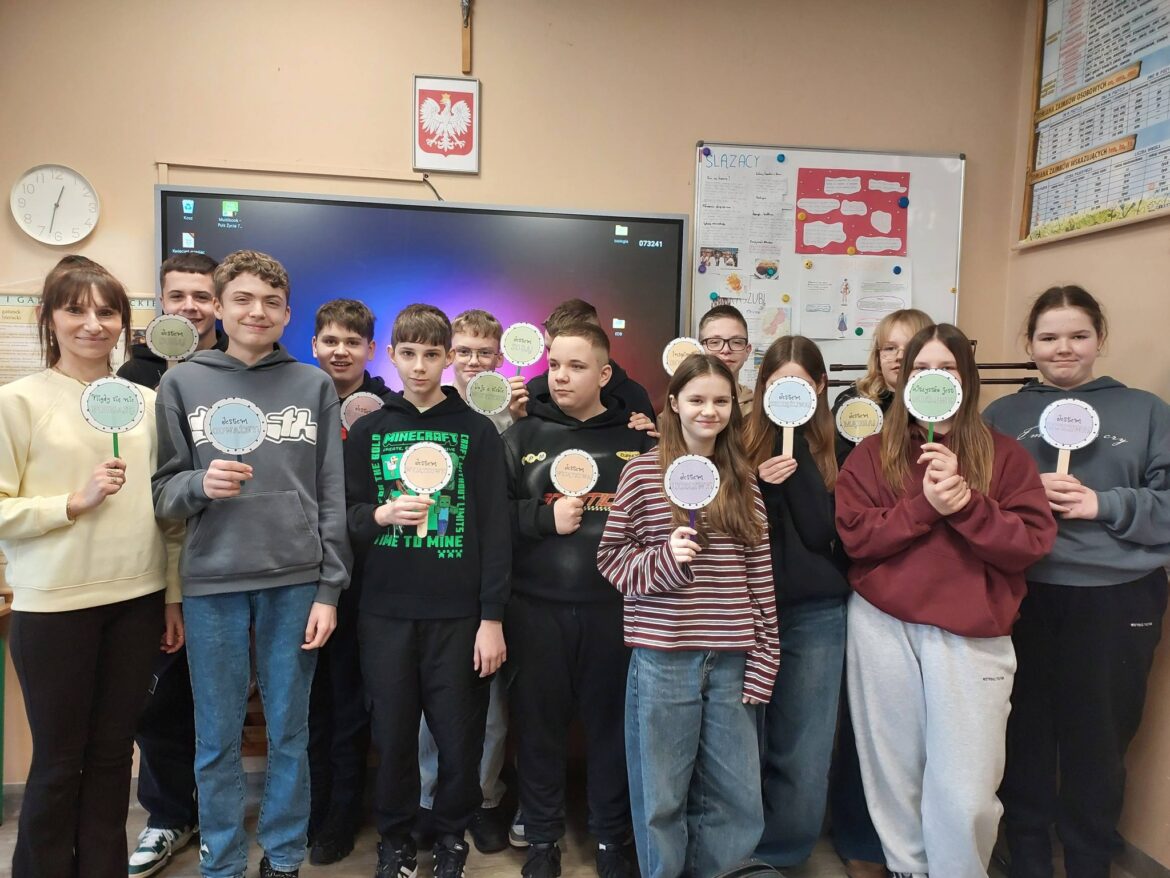 Nasi uczniowie, nauczyciele oraz pracownicy szkoły obchodzili Dzień Pozytywnego Myślenia. Tego dnia losowali więc karteczki z pozytywnymi hasłami, które dodawały energii, otuchy oraz wprawiały każdego w dobry nastrój. Ponadto wszyscy zostali poczęstowani cukierkami, co dodatkowo wywołało uśmiechy. Ważnym elementem było również wykonanie pamiątkowych zdjęć z hasłami promującymi pozytywne nastawienie, które z kolei poprawia naszą samoocenę.