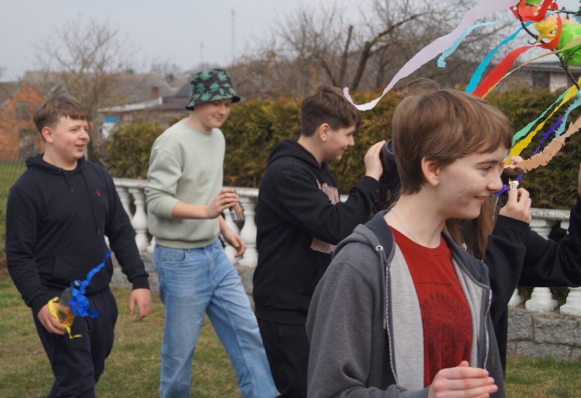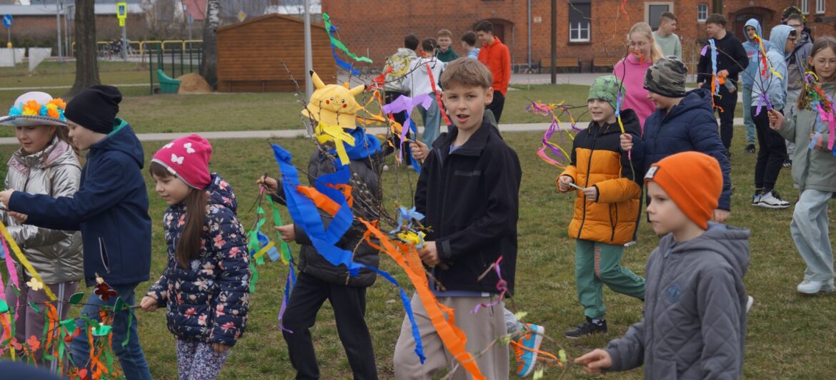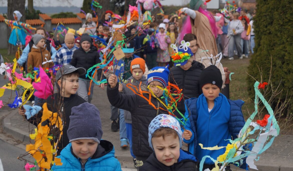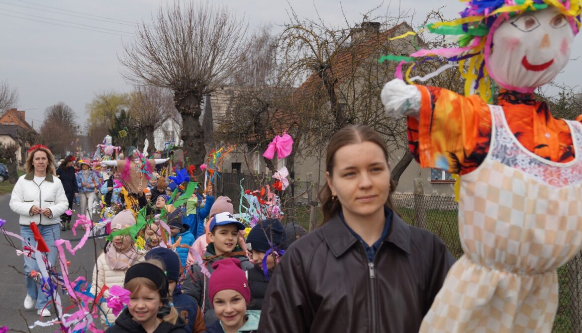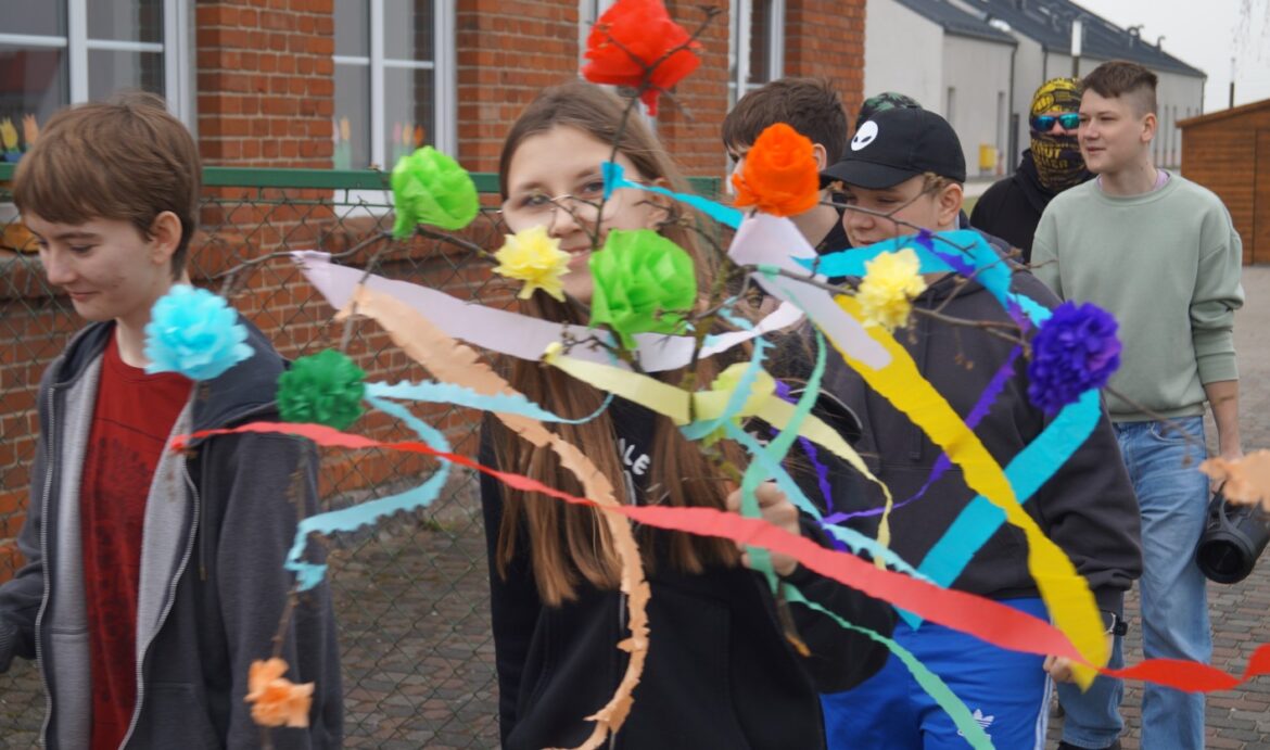 Po artystycznych emocjach wszyscy ruszyli w barwnym korowodzie ulicami Smolic. Uczniowie i nauczyciele nieśli gaiki, instrumenty i całą masę wiosennej energii. Mieszkańcy mogli usłyszeć krzyki, grzechotki i bębny już z daleka – wiadomo, wiosnę trzeba było przywitać tak, żeby zima na pewno nie odważyła się wrócić!