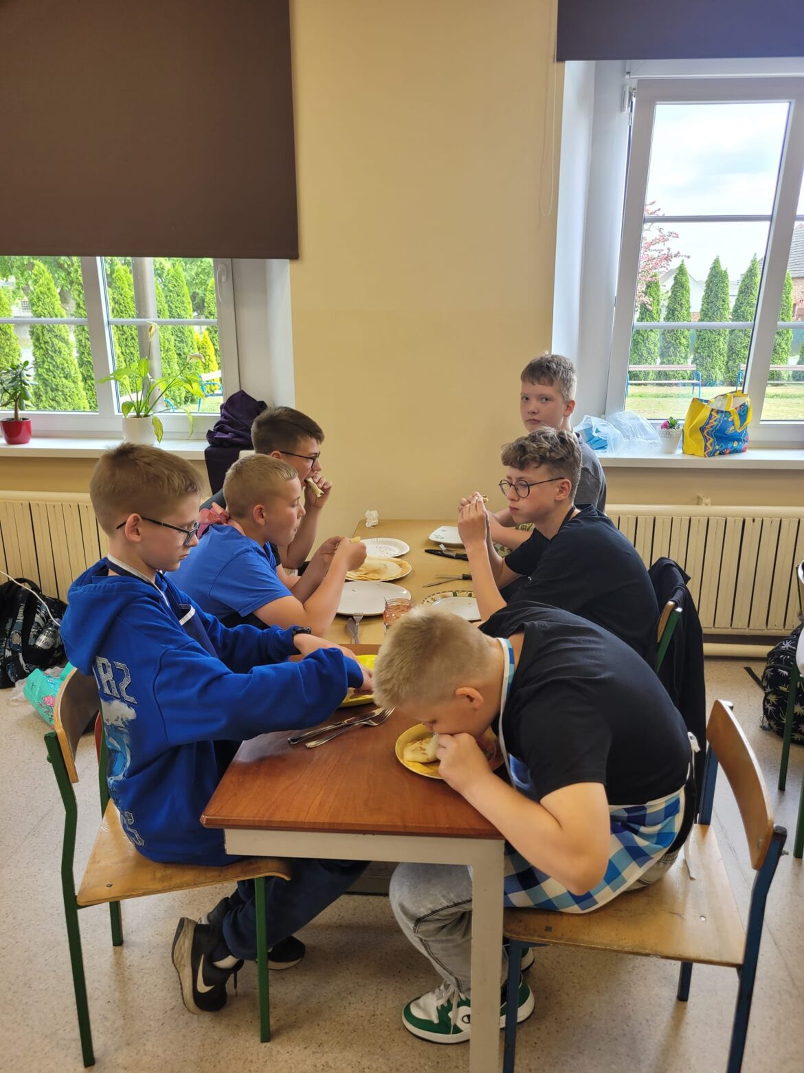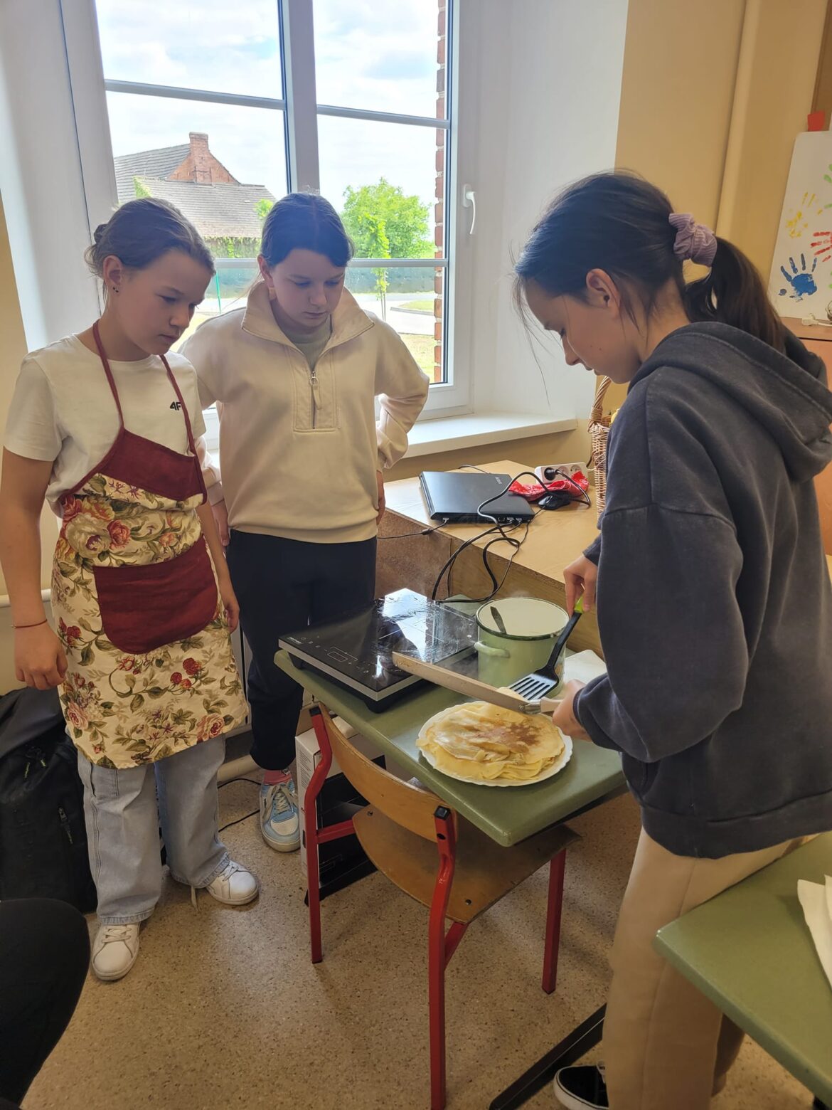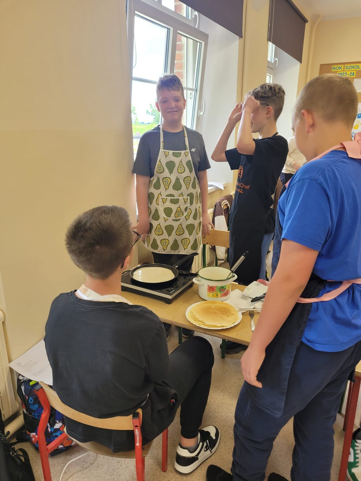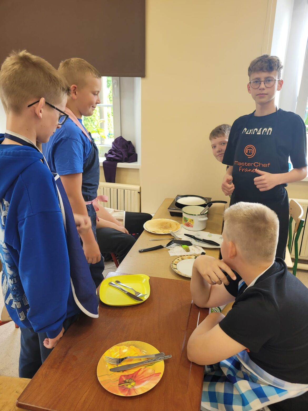 Na zajęciach kulinarnych 10 maja uczniowie klasy 6 samodzielnie przygotowali ciasto, z którego następnie upiekli przepyszne naleśniki.