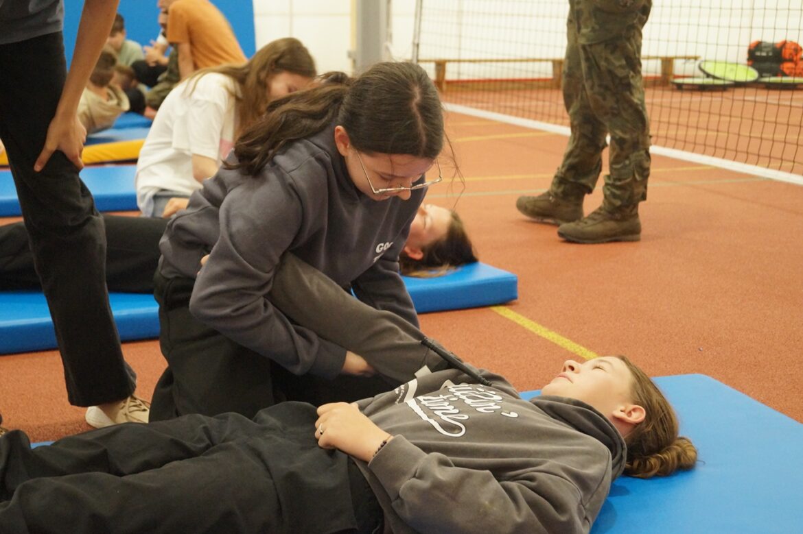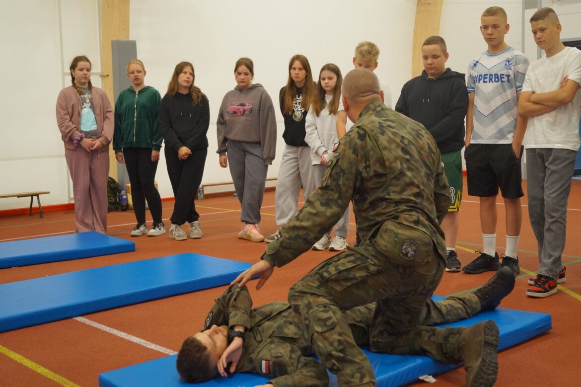 3-lekcyjne szkolenie łączyło teorię i praktykę. Wojskowi szkoleniowcy najpierw przeprowadzili pogadankę w szkole z zakresu wojskowości, obronności, bezpieczeństwa, pomocy medycznej oraz obrony cywilnej. Druga część odbyła się w sali gimnastycznej i dotyczyła ratowania życia własnego i czyjegoś. Nie zabrakło praktyki i sportowej rywalizacji.